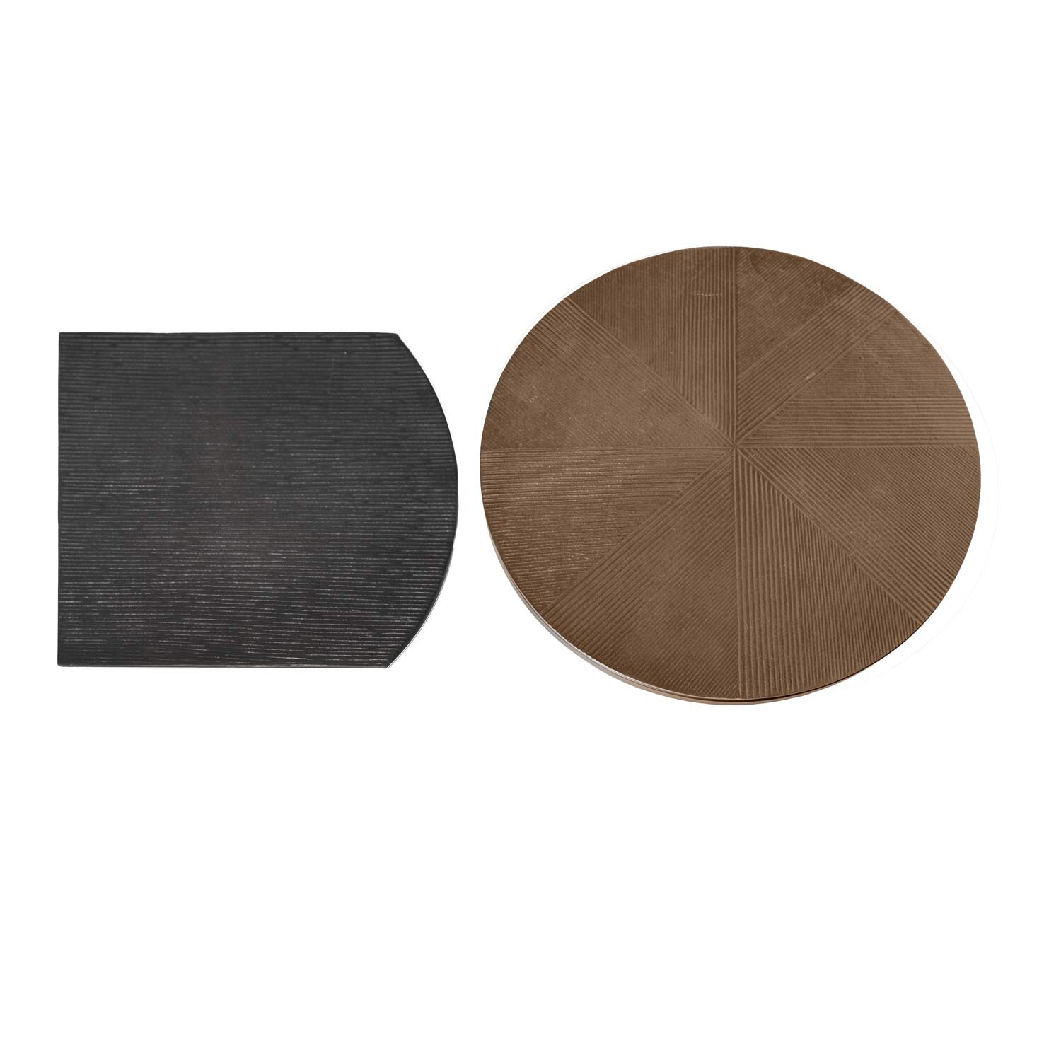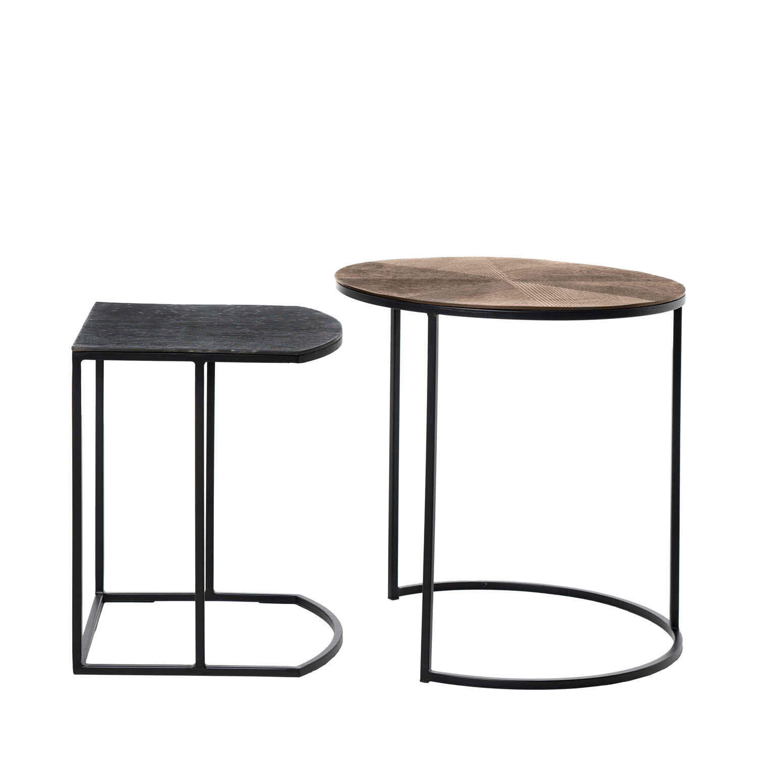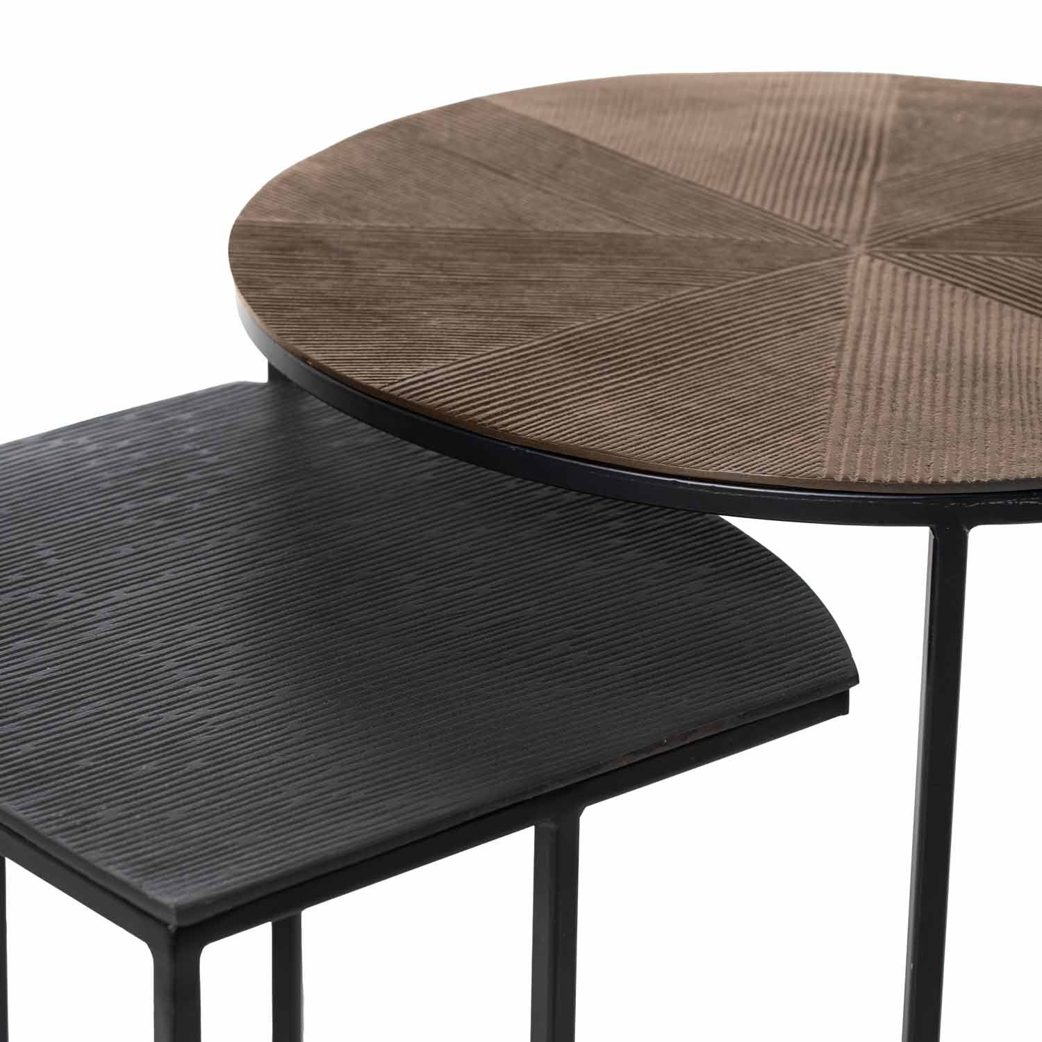El set de mesas auxiliares ARYAN fusiona diseño artesanal y estilo contemporáneo, creando una propuesta única que destaca por sus acabados meticulosos. Las tapas de aluminio exhiben un sutil relieve que añade textura y un toque de distinción, creando un efecto visual cautivador. Dado su diseño artesanal, es posible que la superficie presente pequeñas imperfecciones, aportando autenticidad y carácter a cada pieza. Las patas de metal negro contrastan elegantemente con las superficies metálicas, creando un conjunto versátil y sofisticado, perfecto para ambientes modernos, industriales o boho chic. No se venden por separado .