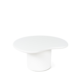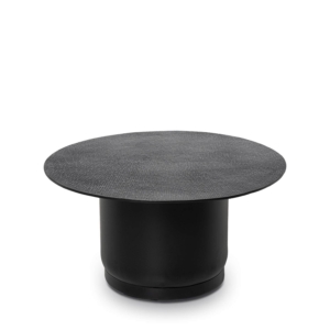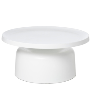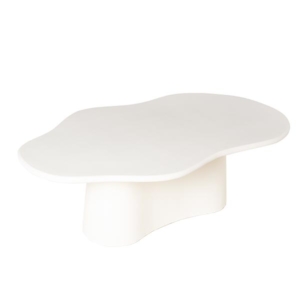 Mesa centro redonda, tapizada en polipiel plisada de color blanco, base metálica acabado latón y tapa de piedra sinterizada imitación mármol blanco.