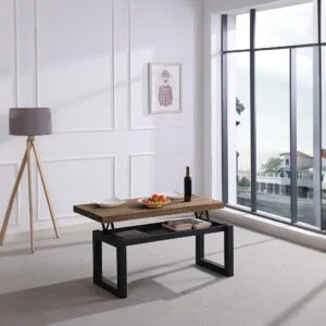 MESA CENTRO ELEVABLE ZOE 120 x 80 CM ROBLE NORDISH / NEGRO.