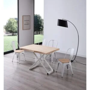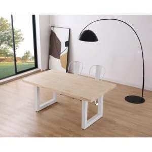 Mesa de centro elevable. Tapa en madera de roble. Estructura metálica color negro. Altura regulable. Medidas: 120 x 80 cm.