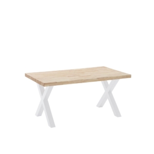 Tapa extensible en madera de roble acabado chaflán. Extensible a 180 o 220 cm. Patas metálicas color negro esquinas en chaflán. Medidas: 140 – 180 – 220 x 80 x 77 cm.