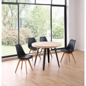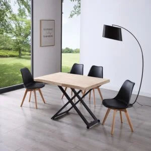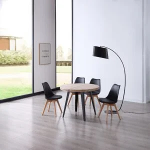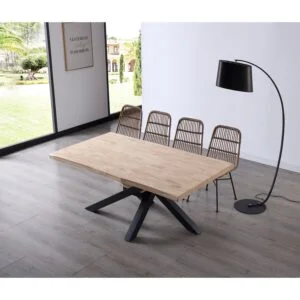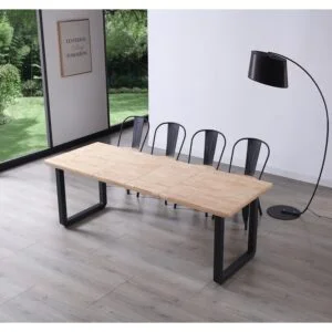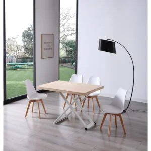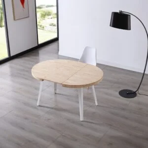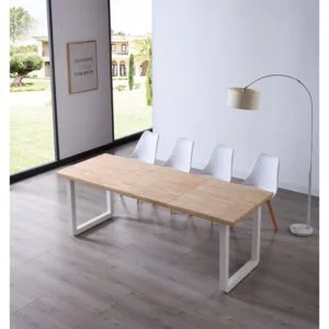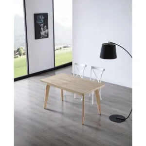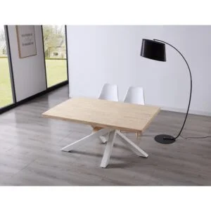 MESA COMEDOR FIJA XENA 150 x 90 CM ROBLE NORDISH / BLANCO TAPA CON FORMA.