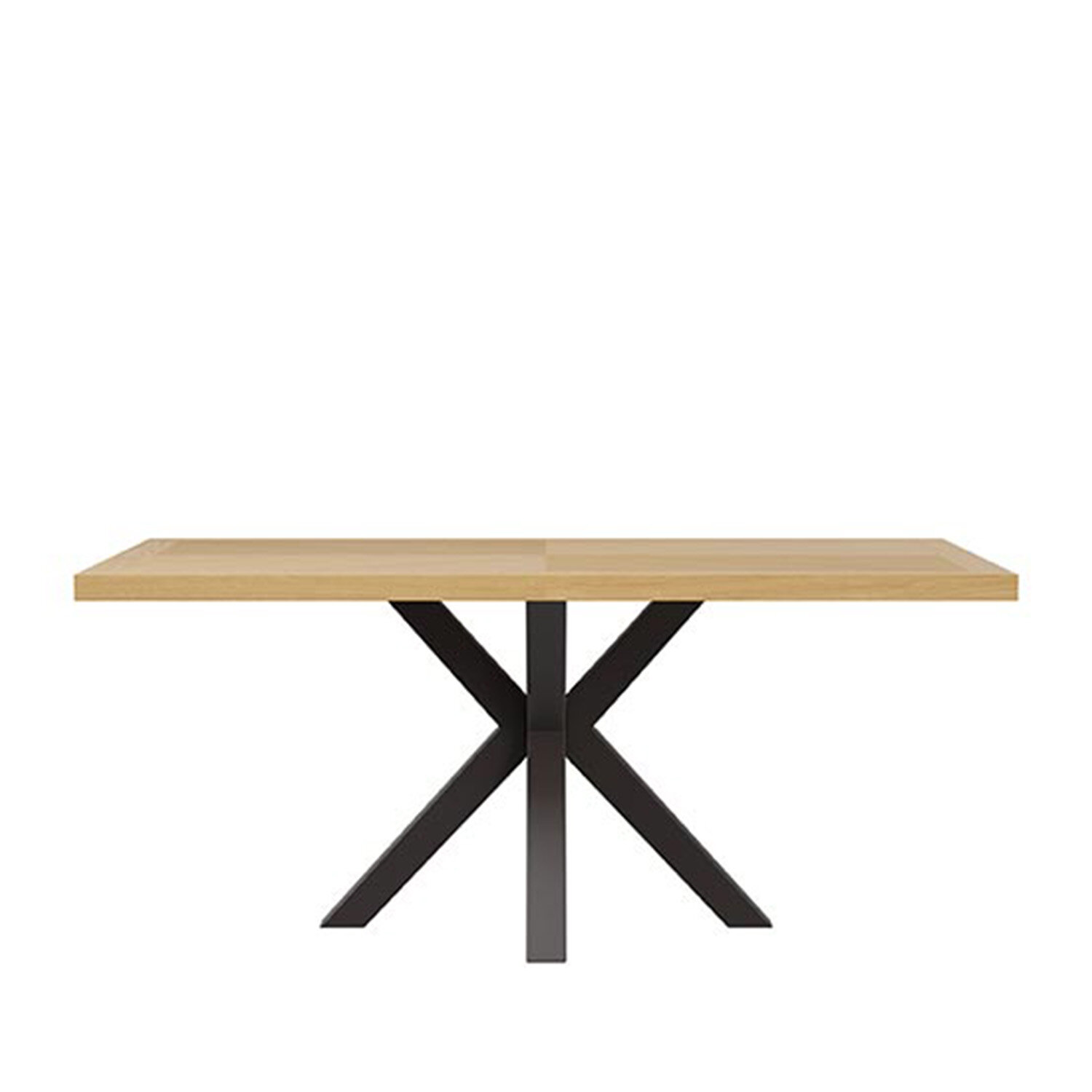 La mesa ELAINE destaca por su diseño sobrio y contemporáneo, donde la calidez de la chapa de roble se encuentra con la solidez del metal para dar vida a una pieza de fuerte personalidad. Su tapa de 48 mm de grosor no solo añade robustez visual, sino que transmite una sensación de calidad y elegancia natural desde cualquier ángulo. Las patas metálicas en negro, de líneas limpias y firme presencia, contrastan con el tono madera de la superficie, creando un equilibrio perfecto entre estilo industrial y esencia escandinava. Gracias a sus distintas versiones —140, 160, 180 y 200 cm—, ELAINE se adapta a todo tipo de espacios, desde comedores amplios hasta ambientes más compactos que buscan funcionalidad sin renunciar al diseño.