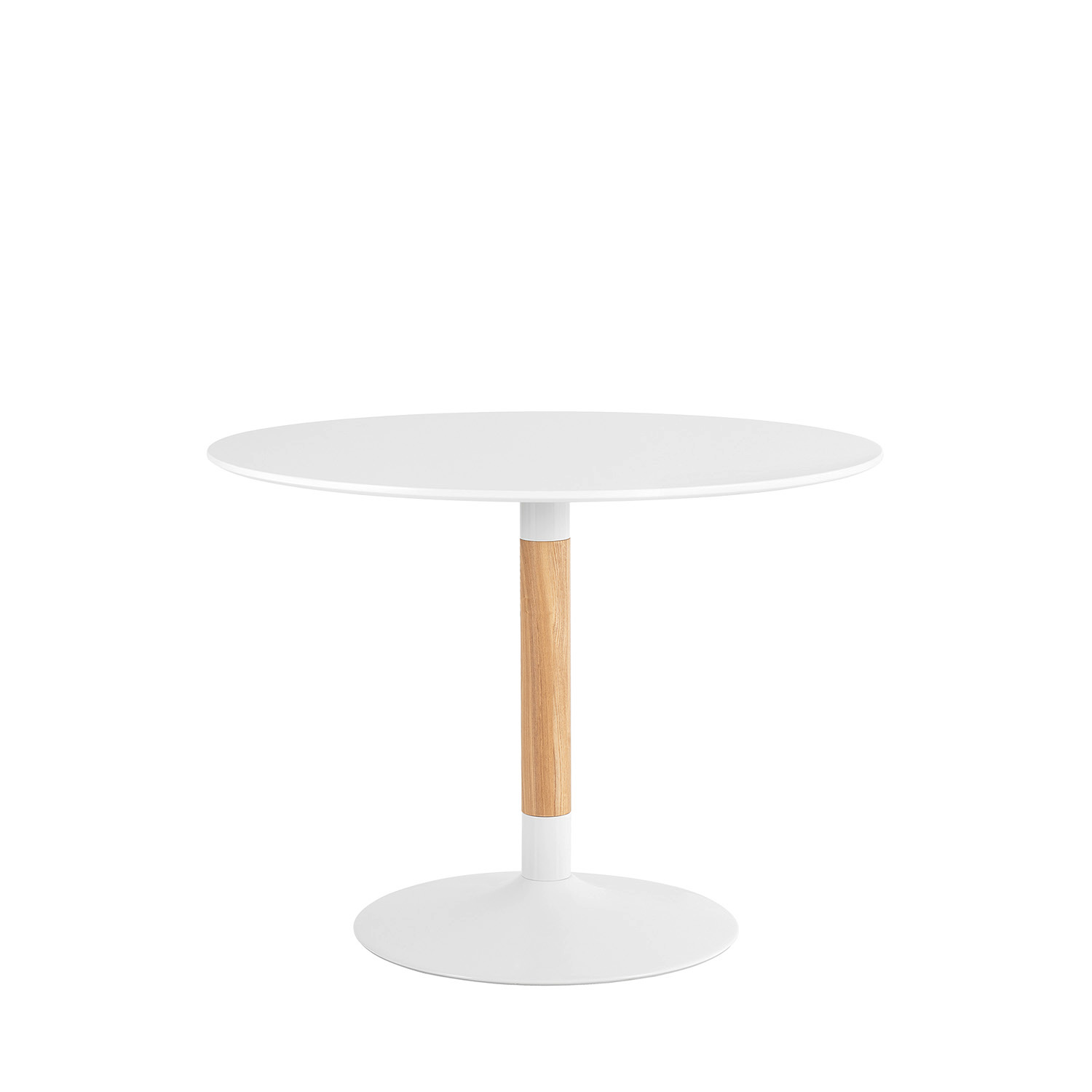 La mesa MIRA combina diseño limpio y resistencia, ideal para espacios HORECA o comedores modernos. Cuenta con una tapa de DM lacado blanco de 20 mm, elegante y fácil de mantener. Su pata de madera aporta calidez, mientras que la base metálica asegura estabilidad. Una opción funcional y estilizada para ambientes que buscan estética y durabilidad.