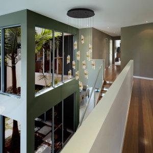 Lámpara de 13 luces LED. Realizada en metal acabado negro mate y oro brillo. Tulipas con diseño en espiral, realizadas en acrílico moldeado y tallado. Regulables en altura. 91 W LED. 8.370 lm. Incluye driver TRIAC y SET de dimado.