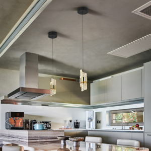 Lámpara de 3 luces LED. Realizada en metal acabado negro mate y oro brillo. Tulipas con diseño en espiral, realizadas en acrílico moldeado y tallado. Regulables en altura. 21W LED. 1.899 lm. 3.000 K. DIMABLE.