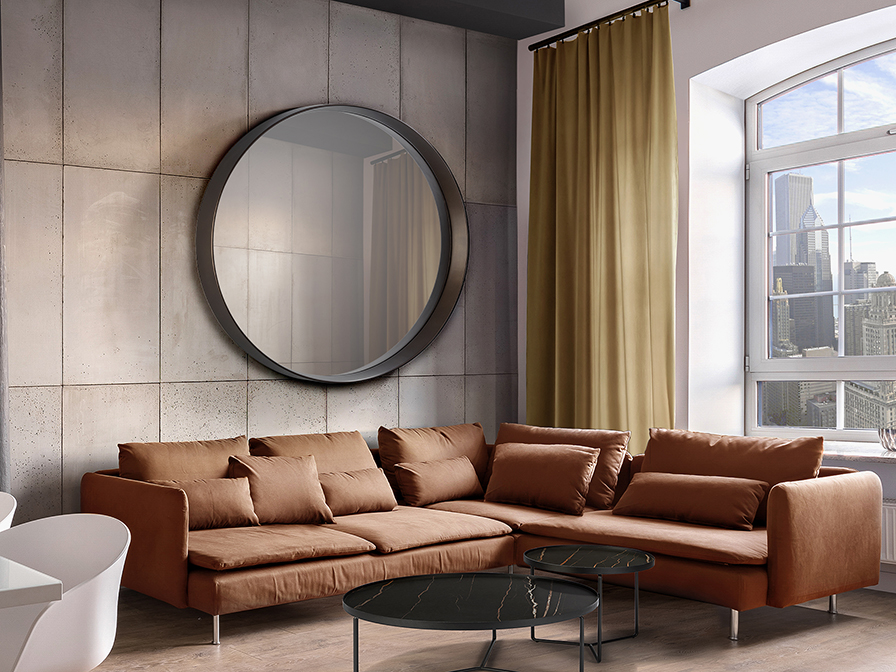 Espejo decorativo, con marco realizado en PU acabado en bronce oscuro