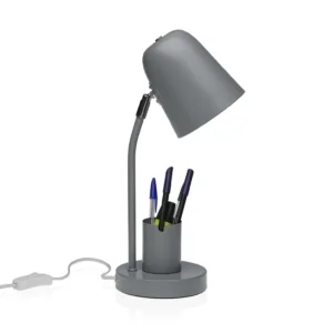 Lámpara realizada en metal acabado negro mate. Tulipa de metal gris claro. Regulable en altura. Portalámparas GU10.