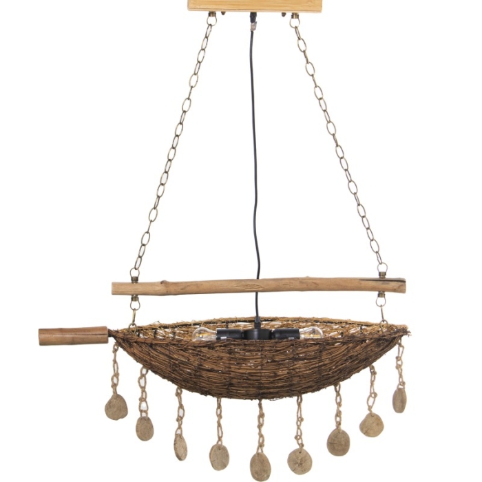 Lámpara Techo Bambú y Madera Natural 2Xe27 Max60W y No Incluida Colgada