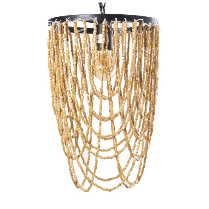 Lámpara Techo Metal C y Cuentas Madera y 1Xe27 y Max.60W