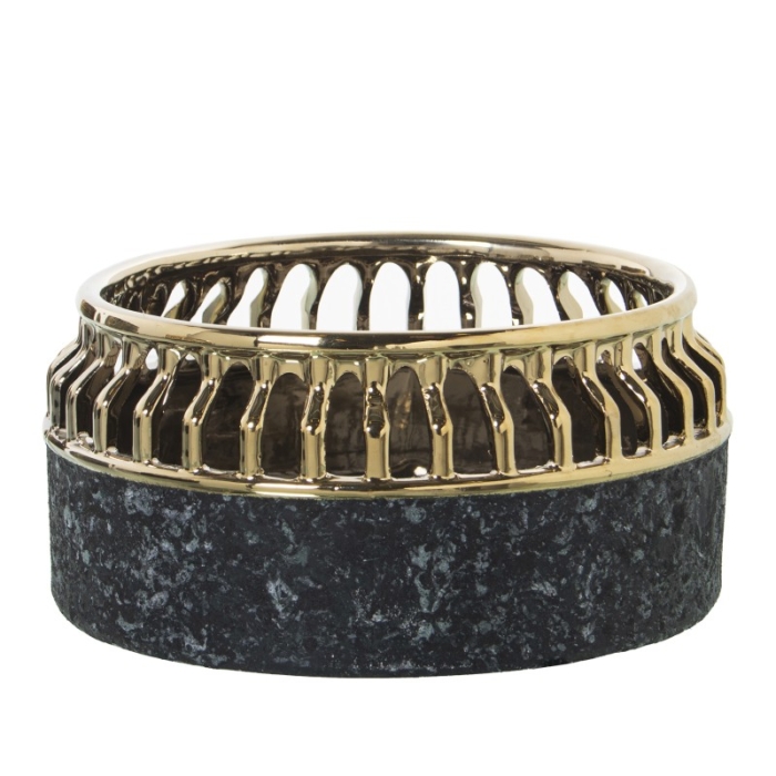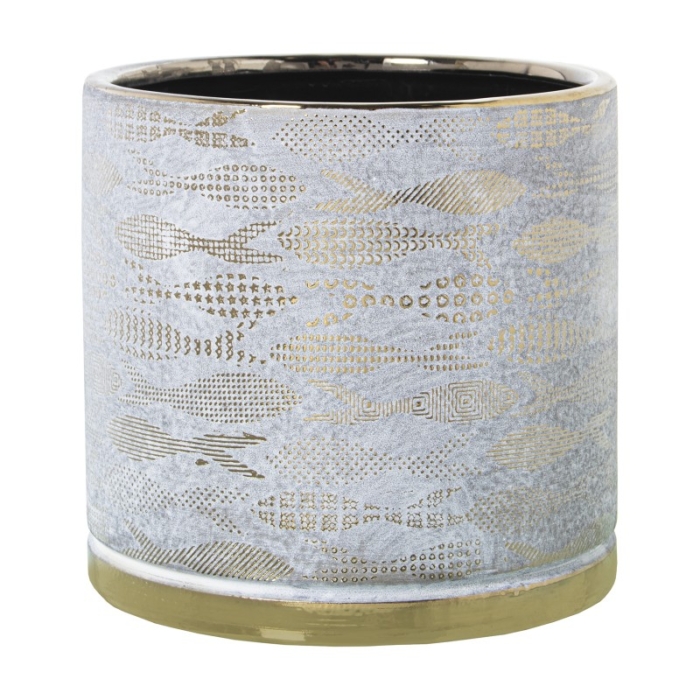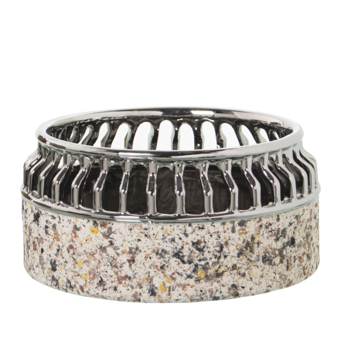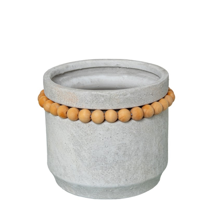 Macetero Cerámica Ø24Cm Gris C y Bolitas Madera