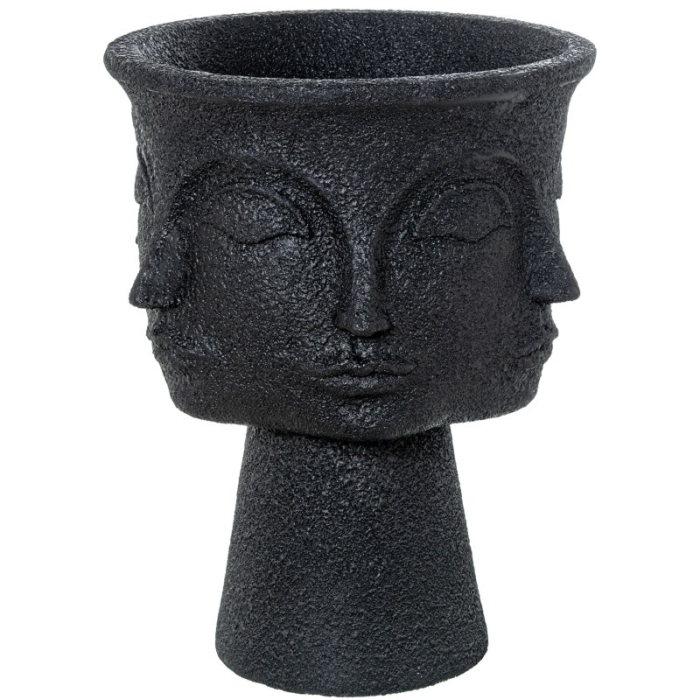 Macetero 3 Caras Resina Negro Granulado Hueco:ø18 y