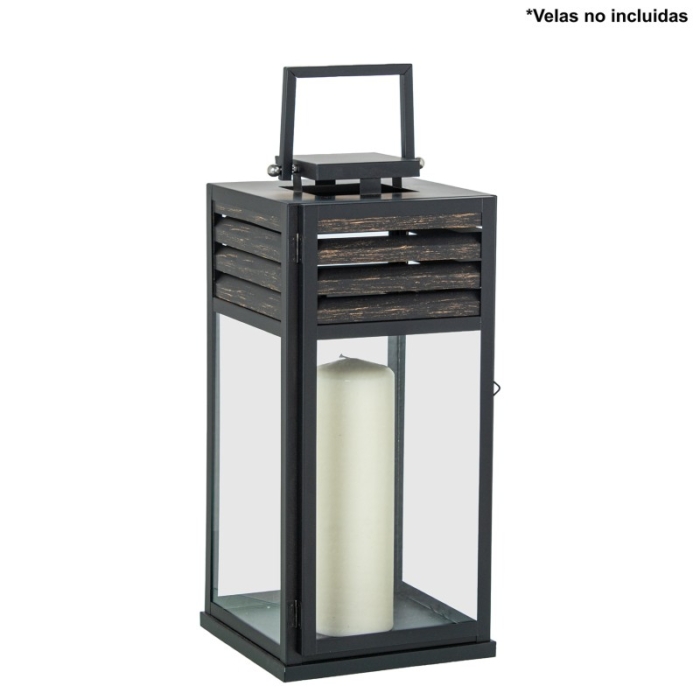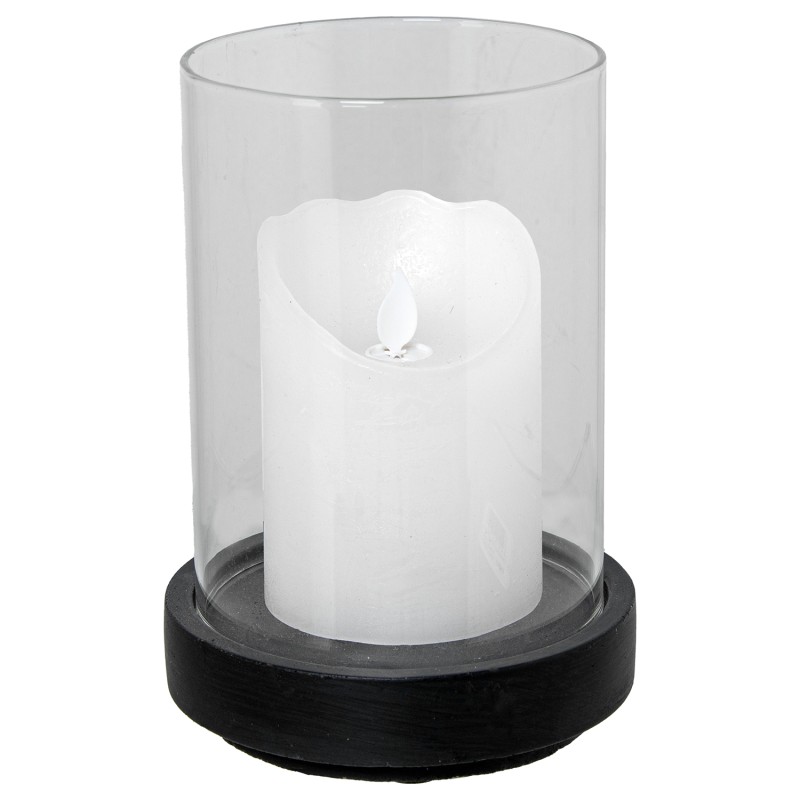 Portavelas Cerámica Gris C y Cilindro Cristal