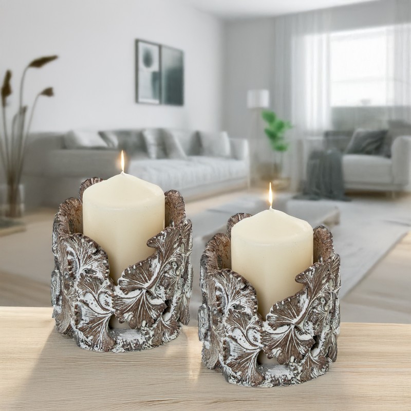 Detalles: Portavelas Resina Hojas Marrón Decapé | Categoría: Decoracion Otros | Ref.: 50309