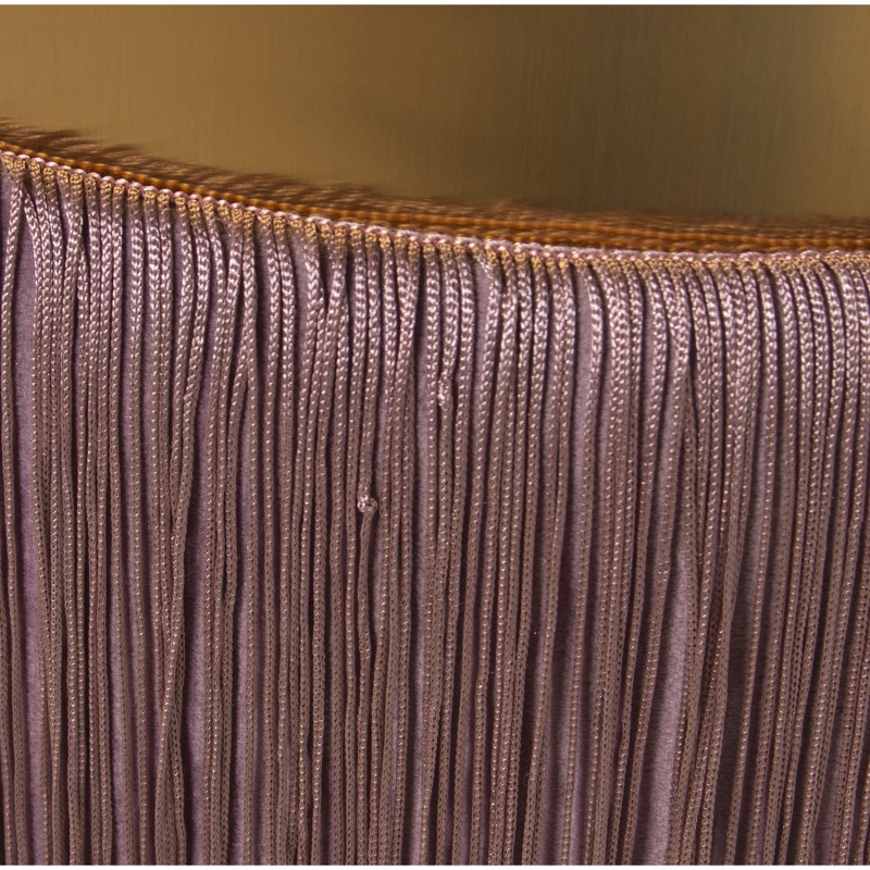 Detalles: Puf Terciopelo Rosa C y Flecos y Banda Acero Dorado:7Cm y Dm y Poli y Flecos:29Cm | Categoría: Mueble Auxiliar | Ref.: 49416