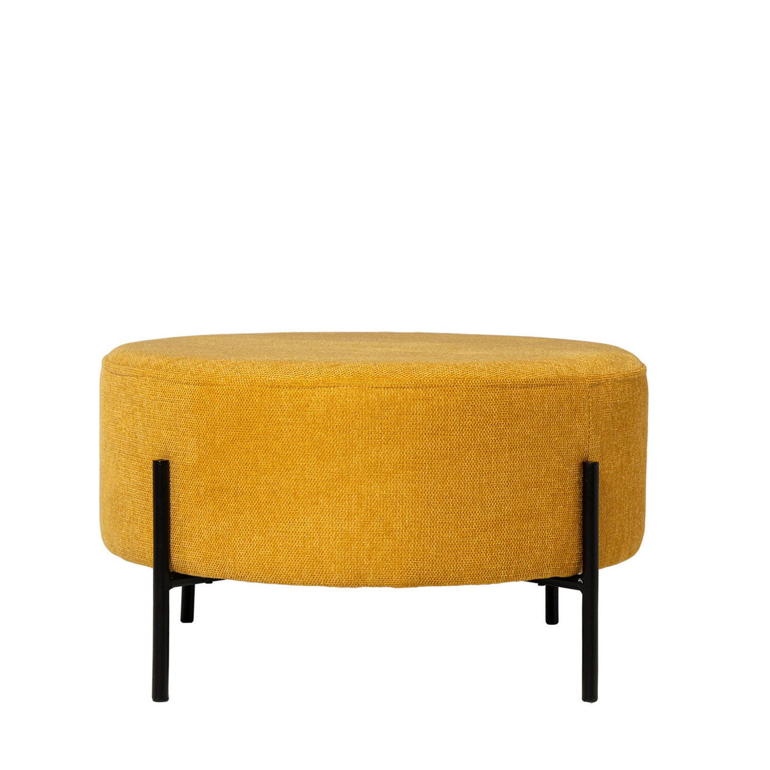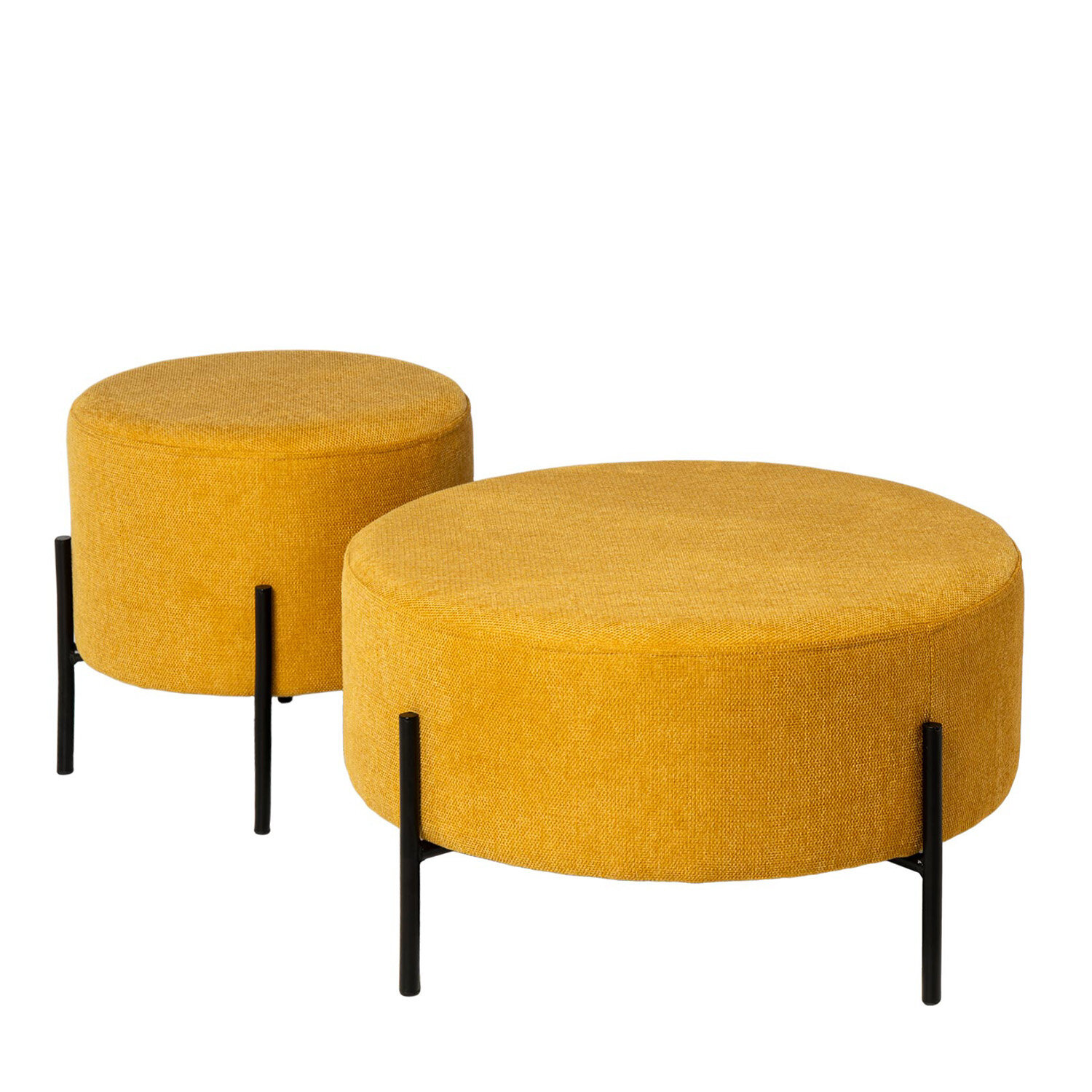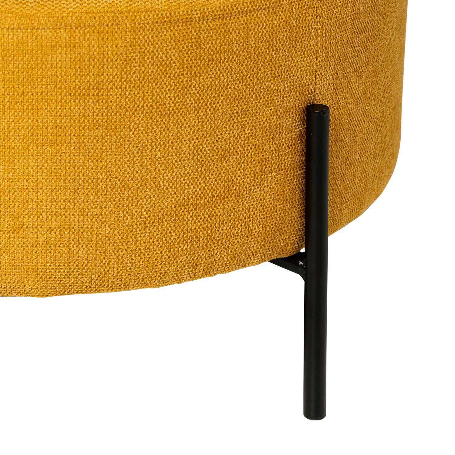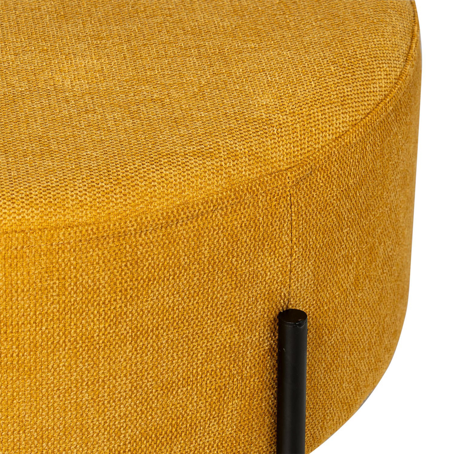 El diseño redondo y genoroso del puff CAMILO proporciona un asiento cómodo y amplio, ideal para relajarse o para utilizarlo como reposapiés en zonas de descanso. Las patas metálicas, sutilmente elevadas, crean un contraste interesante que aporta ligereza visual sin restar estabilidad. Esta estructura no solo refuerza su carácter moderno, sino que también facilita integrarlo en diferentes estilos decorativos. En la foto están el puff CAMILO y el puff HERMAN, se venden por separado.