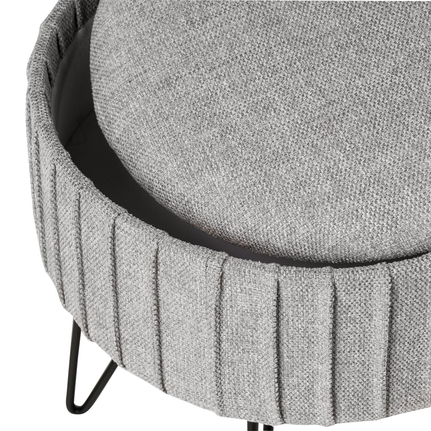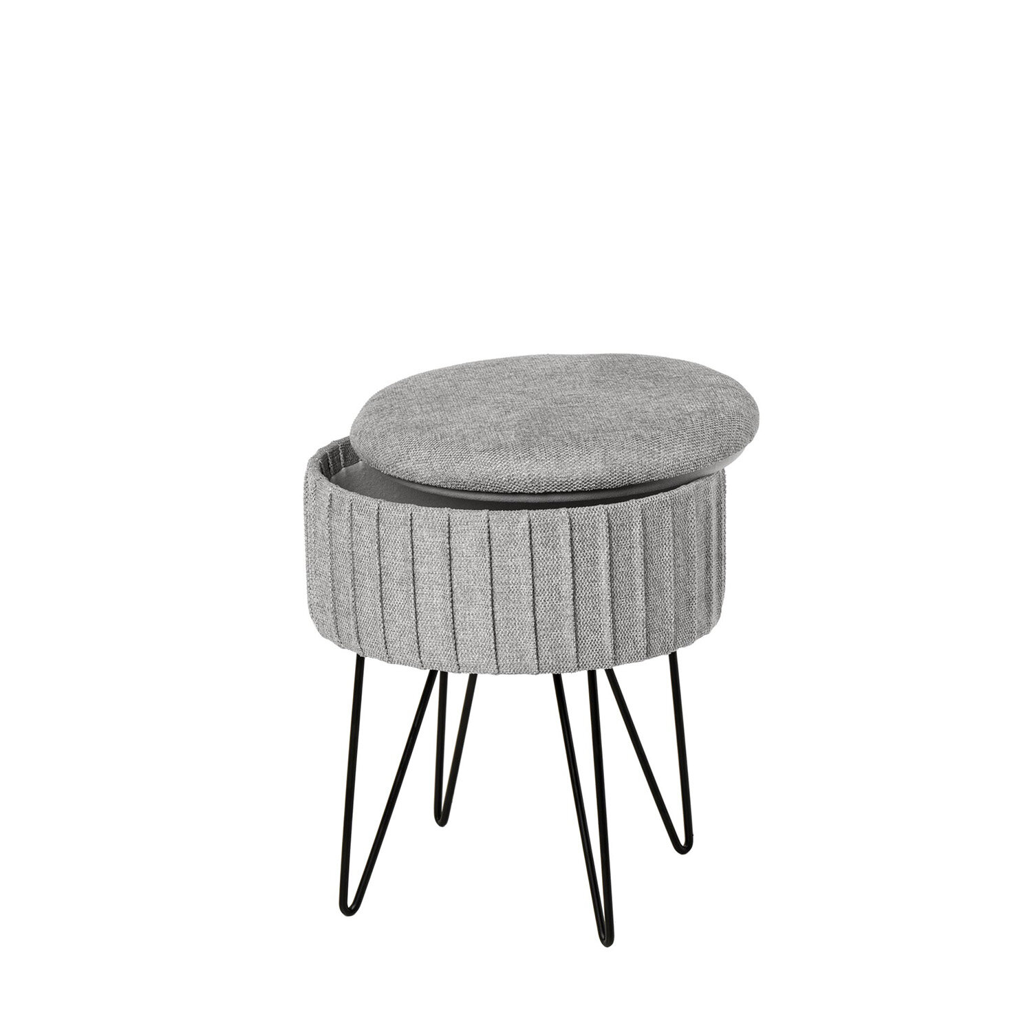 El puff ETHAN es el complemento decorativo perfecto. Bajo su tapa superior, se esconde un práctico espacio de almacenaje que permite mantener el orden sin renunciar al estilo. Ideal para guardar mantas, libros o pequeños objetos, convirtiéndolo en un aliado perfecto para salones y dormitorios. Las patas metálicas aportan un toque contemporáneo y elevan ligeramente la estructura, añadiendo ligereza visual sin perder estabilidad. Disponible en tonos versátiles como gris, beige, mostaza y menta. Pieza decorativa. No apta para su uso como asiento .