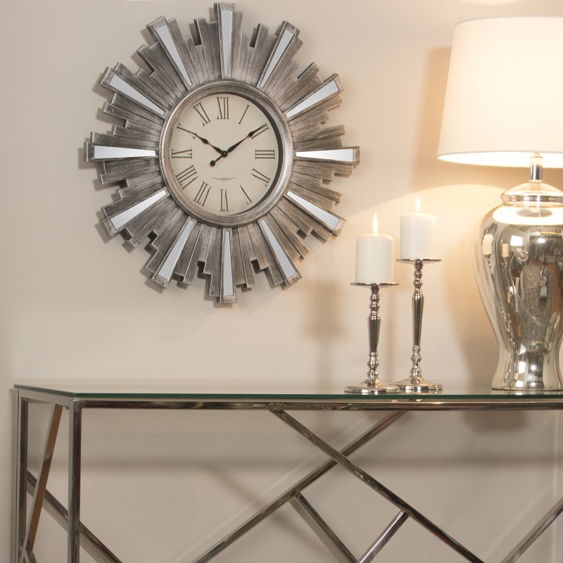 Reloj Pared Metal Cromado y Cristal y Pila:1Xaa y 1 y 5V (No Inclu