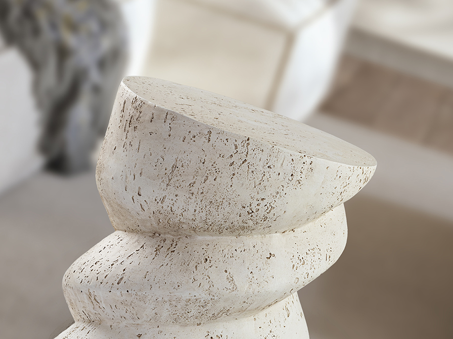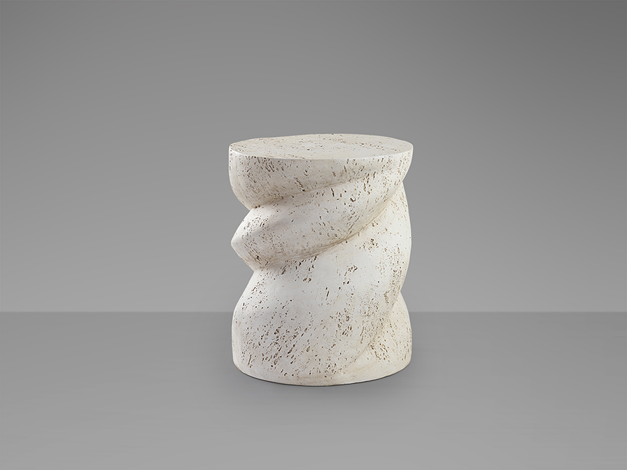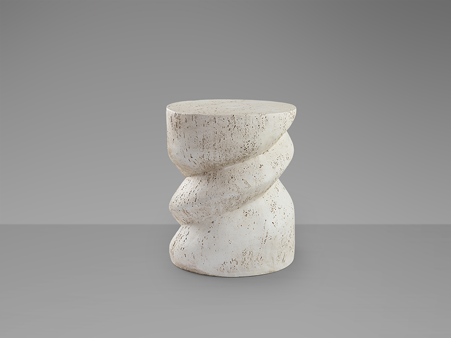 Mesita auxiliar realizada en OMG (magnesio moldeado), textura cemento, acabo blanco mate.