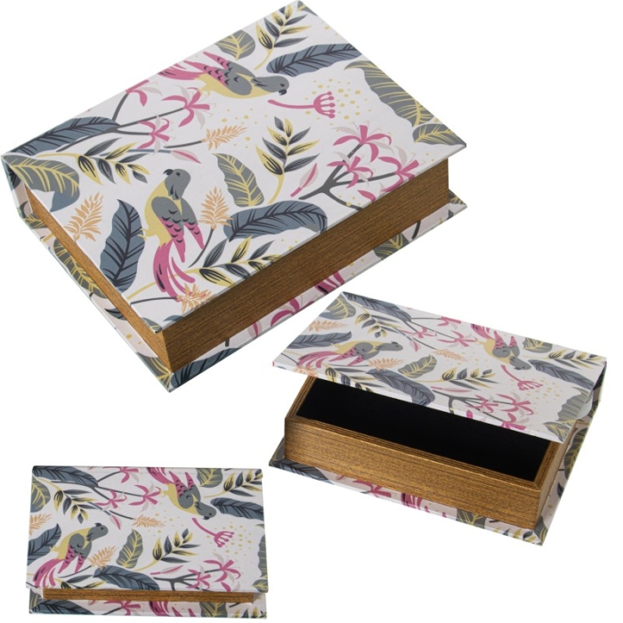 Set 2 Cajas Decoradas Madera Dm y Lona Poliéster -Home- y