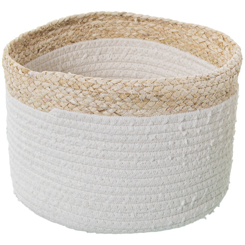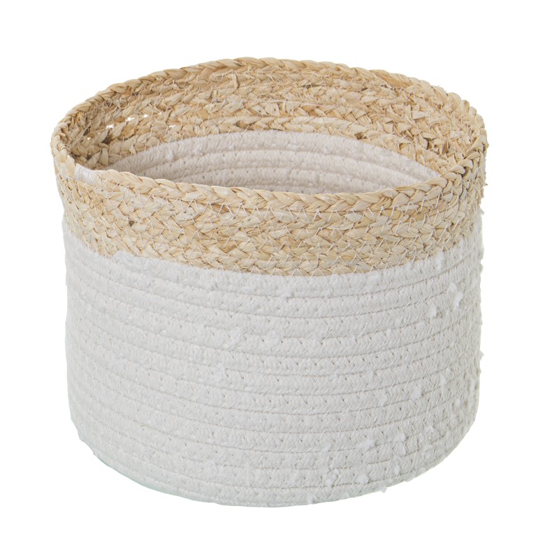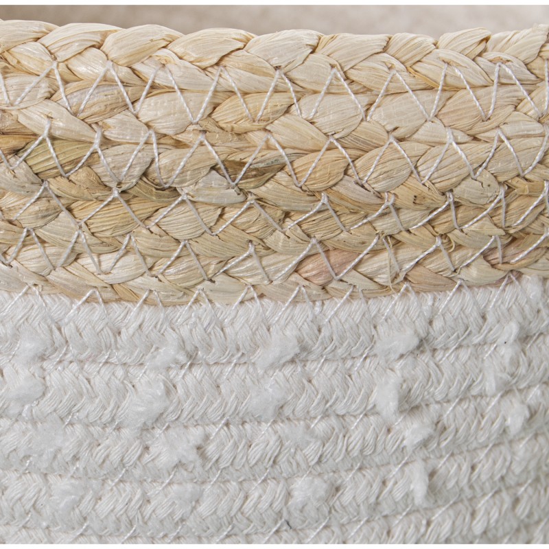 Set 2 Cestos Hojas Maíz y Algodón Natural y Blanco y