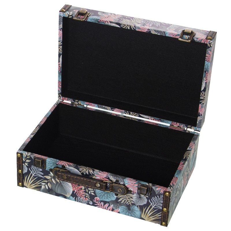 Detalles: Set 2 Maletas Decoradas Madera Dm y Lona Poliéster Hojas 34 y 5Cm | Categoría: Hogar | Ref.: 27055