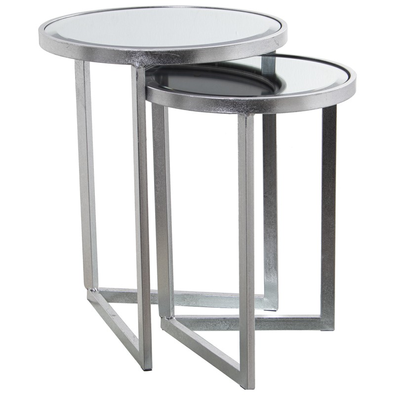 Detalles: Set 2 Mesas Metal Plateado y Espejo y | Categoría: Mueble Auxiliar | Ref.: 71788