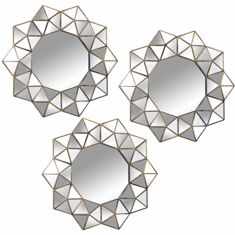 Set 3 Adornos Pared Espejo C y Melamina Dorada Ø25Cm