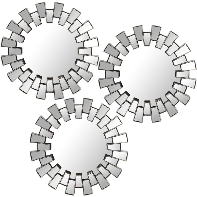 Set 3 Adornos Pared Espejo Melamina Plateada Ø25Cm