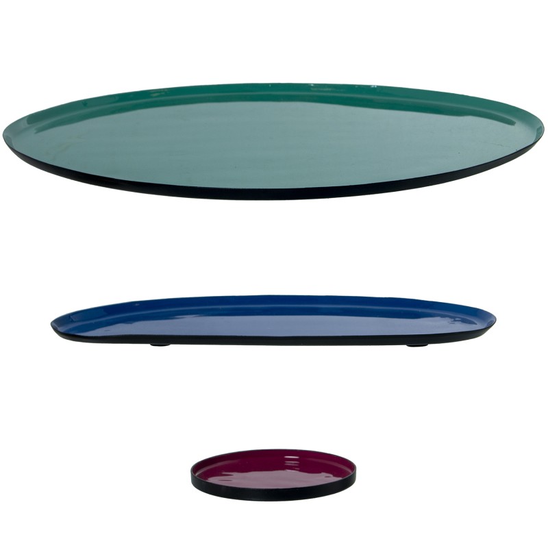 Detalles: Set 3 Bandejas Esmaltadas Verde y Azul y Rosa Oscuro y | Categoría: Decoracion Metal | Ref.: 75885