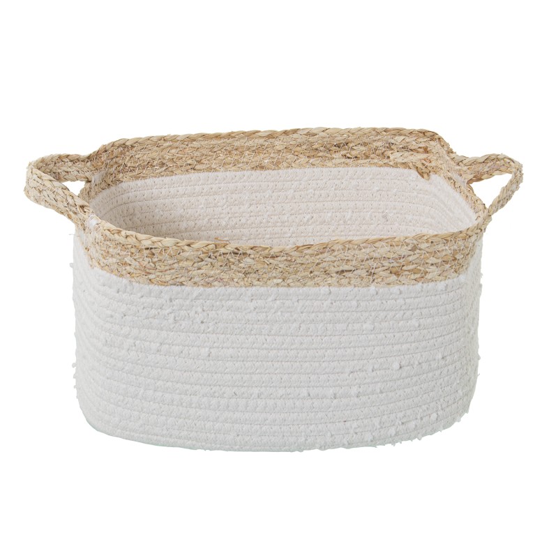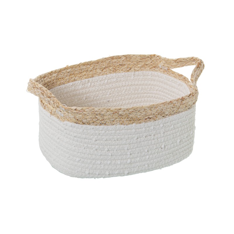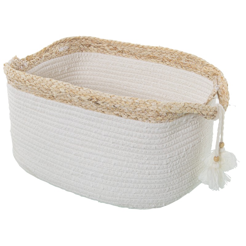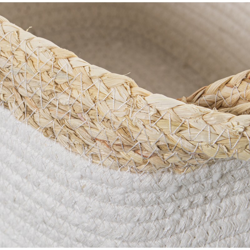 Set 3 Cestos Hojas Maíz y Algodón Natural y Blanco y