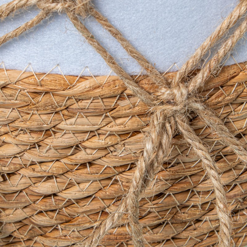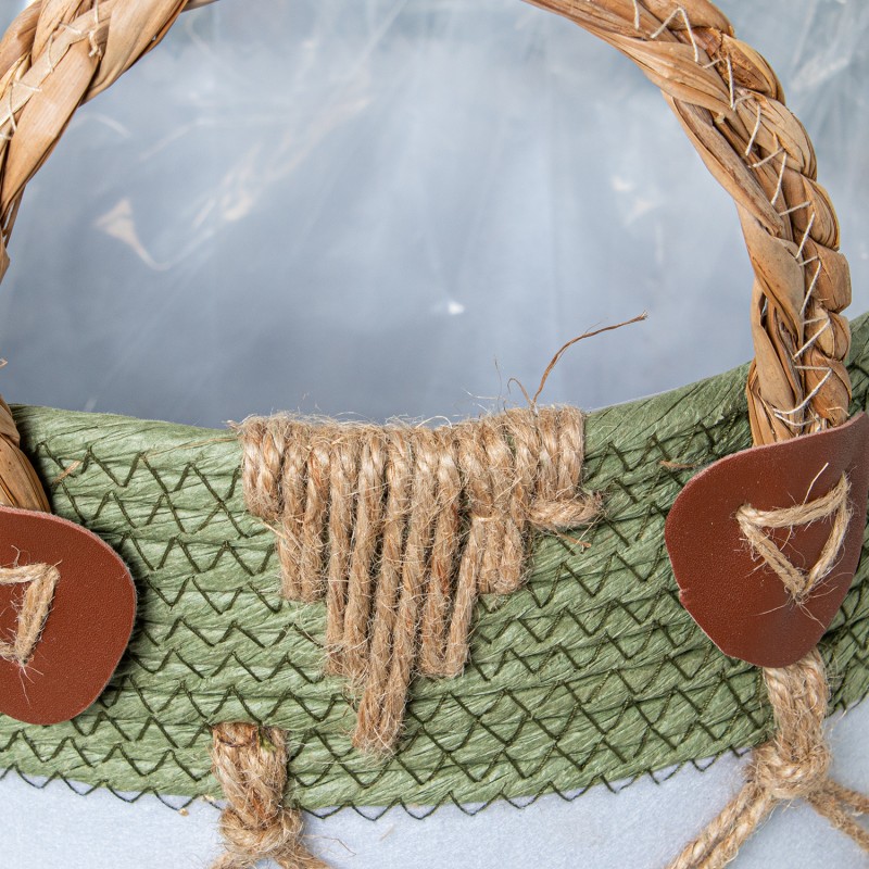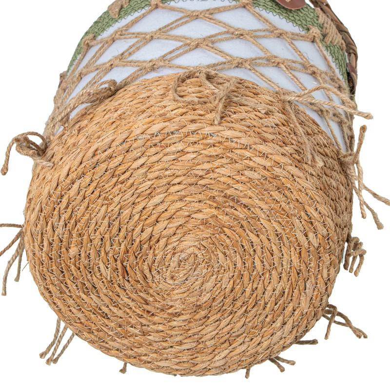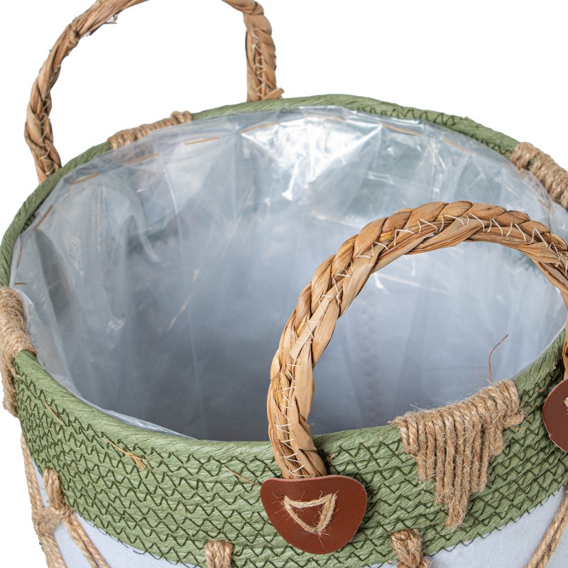 Set 3 Cestos Mimbre Natural y Verde Tela Blanca C y Flecos y