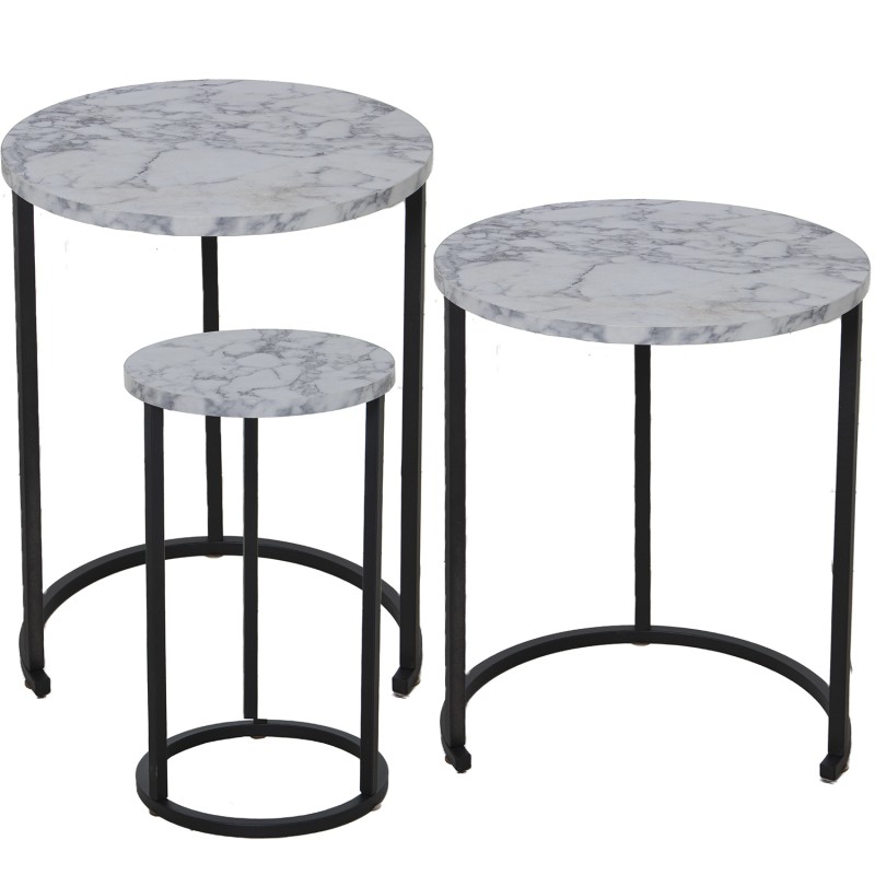 Detalles: Set 3 Mesas Aux. Madera Patas Metal Negras y Efecto Marmol Bl y 5 y | Categoría: Mueble Auxiliar | Ref.: 72222