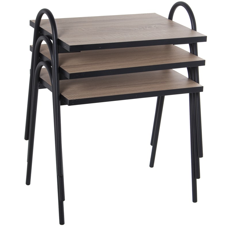 Detalles: Set 3 Mesas Aux. Patas Negras Sobre Roble Cada | Categoría: Mueble Auxiliar | Ref.: 72254