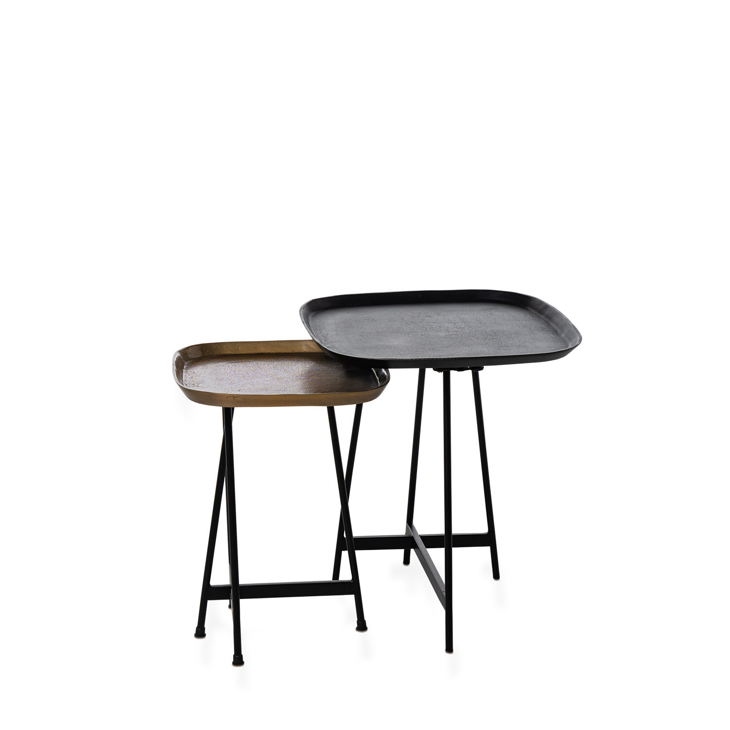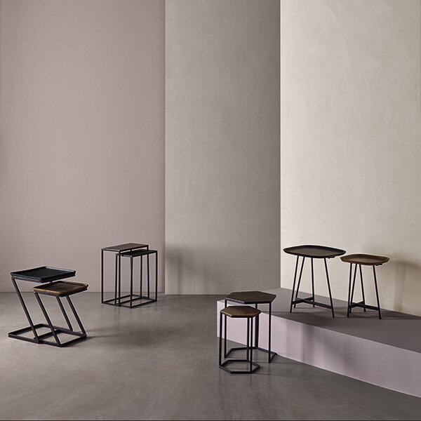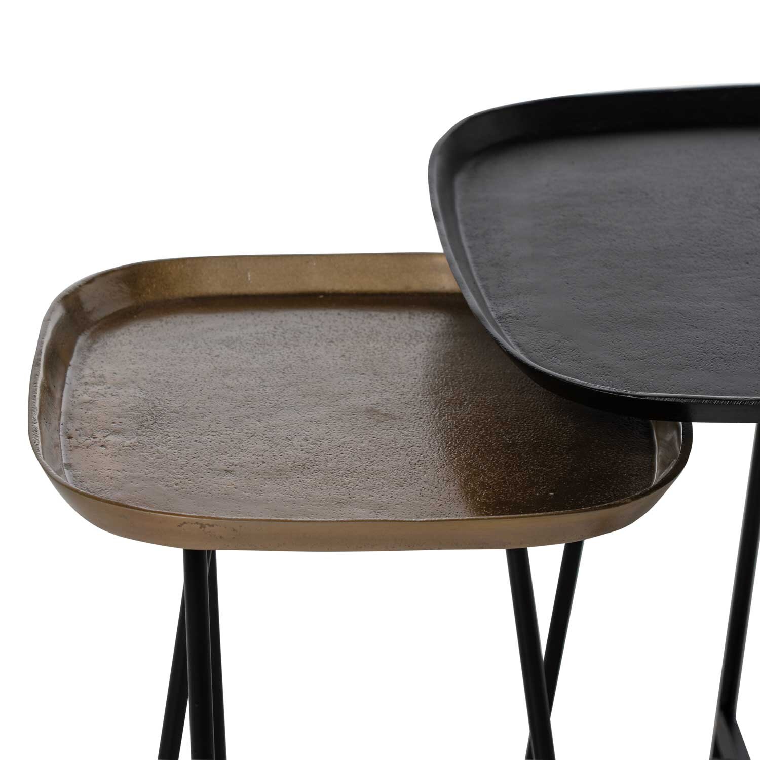 El set de mesas auxiliares AMIR destaca por su diseño artesanal y carácter único, aportando un toque distintivo a cualquier ambiente. Cada mesa está compuesta por una tapa de aluminio cuidadosamente trabajada, lo que le otorga una estética elegante y contemporánea, con sutiles imperfecciones que reflejan el proceso artesanal de su fabricación. Las superficies de aluminio presentan un acabado texturizado que juega con la luz, creando un efecto visual cautivador y sofisticado. Las patas de hierro garantizan estabilidad, mientras que su diseño compacto las convierte en piezas versátiles, ideales para complementar sofás, sillones o rincones acogedores. No se venden por separado.