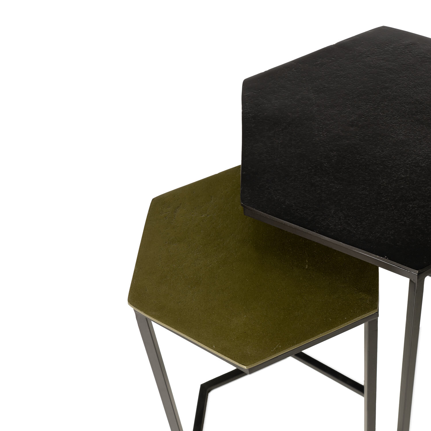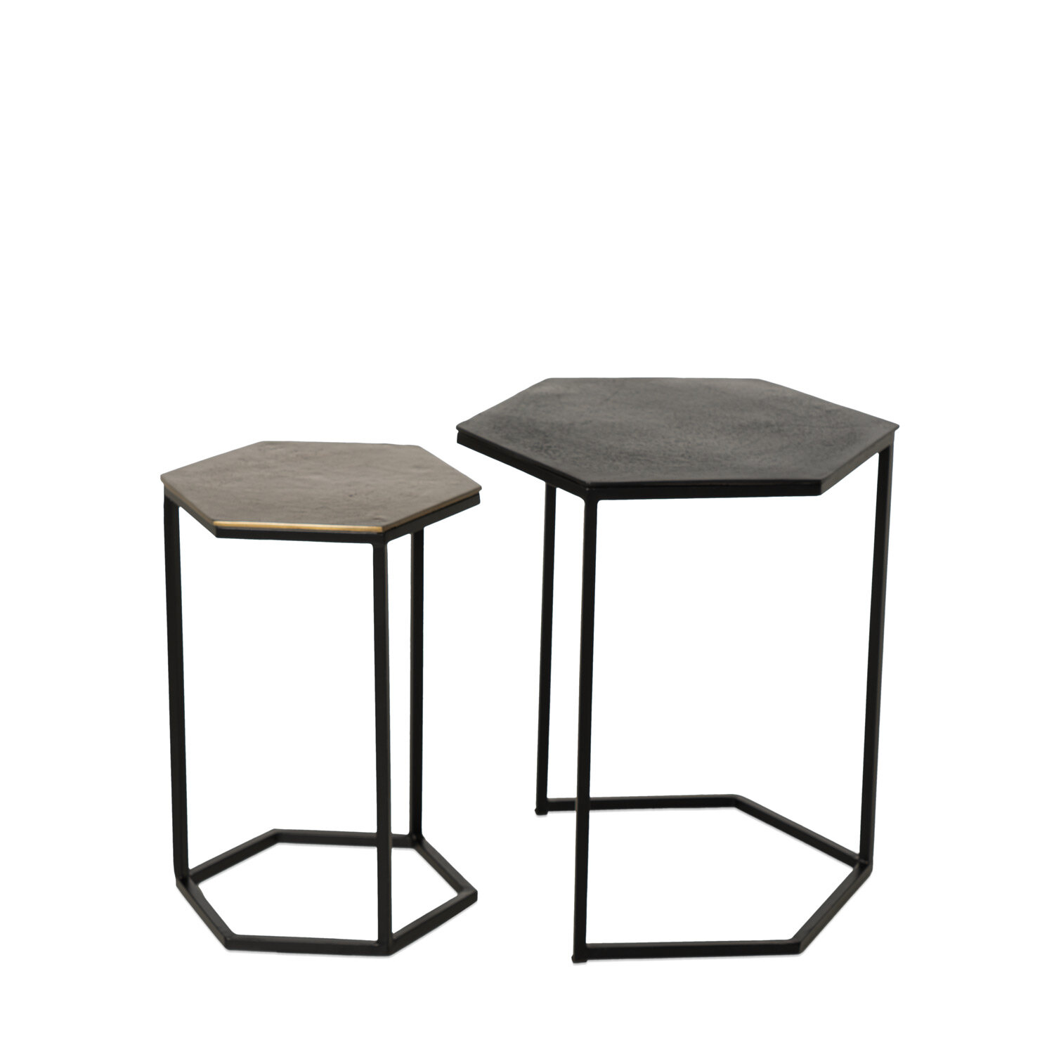 El set de mesas auxiliares RUNSHIL destaca por su diseño hexagonal lleno de estilo. Las tapas, realizadas en aluminio, presentan un acabado sutilmente texturizado que aporta un toque sofisticado y contemporáneo. Las patas de hierro, con un diseño hexagonal cuidadosamente estructurado están concebidas para encajar una mesa debajo de la otra. Esta disposición permite optimizar el espacio, manteniendo la estética elegante y ligera del conjunto. Cada pieza puede presentar ligeras imperfecciones propias del proceso artesanal, convirtiendo a RUNSHIL en un conjunto auténtico y lleno de personalidad. Perfectas para ambientes modernos o industriales, estas mesas son el equilibrio perfecto entre funcionalidad y arte decorativo. No se venden por separado.