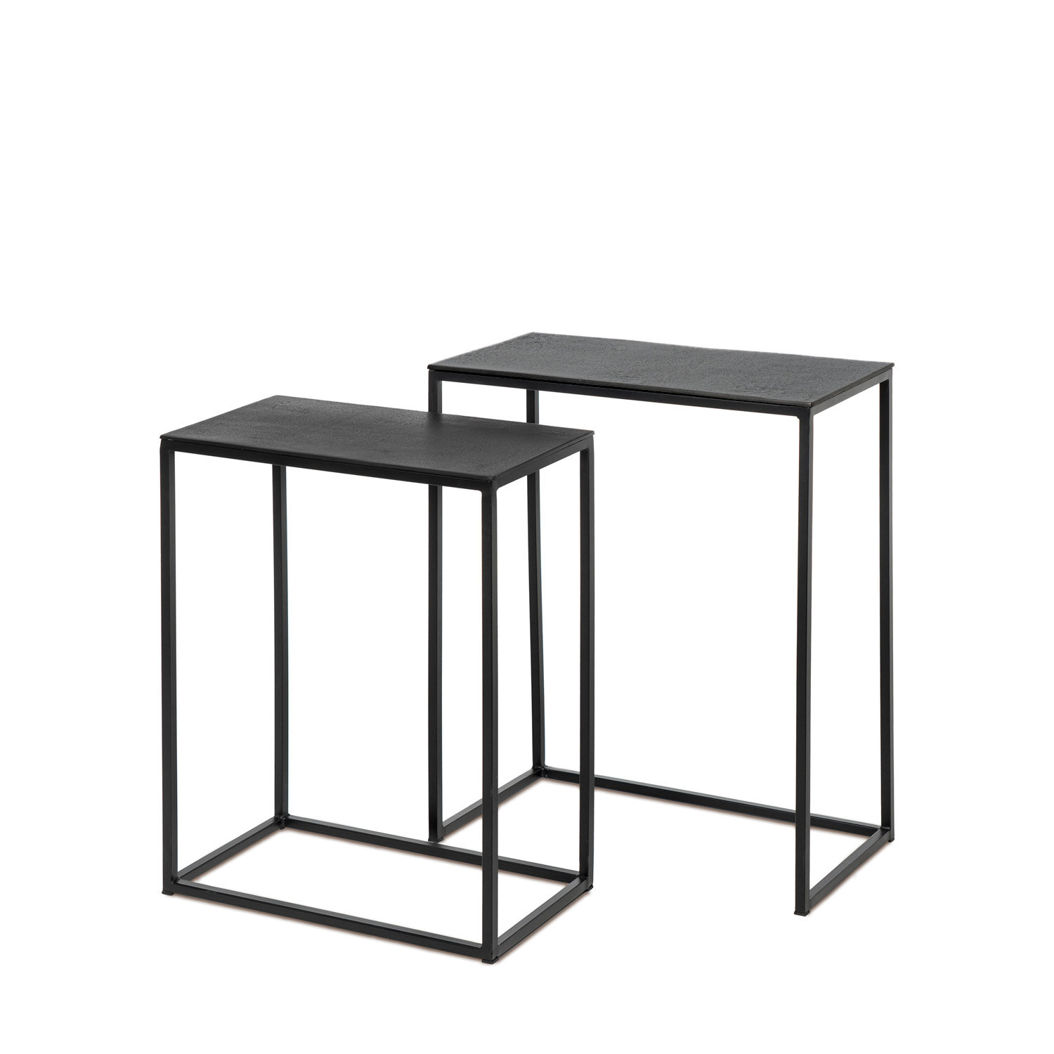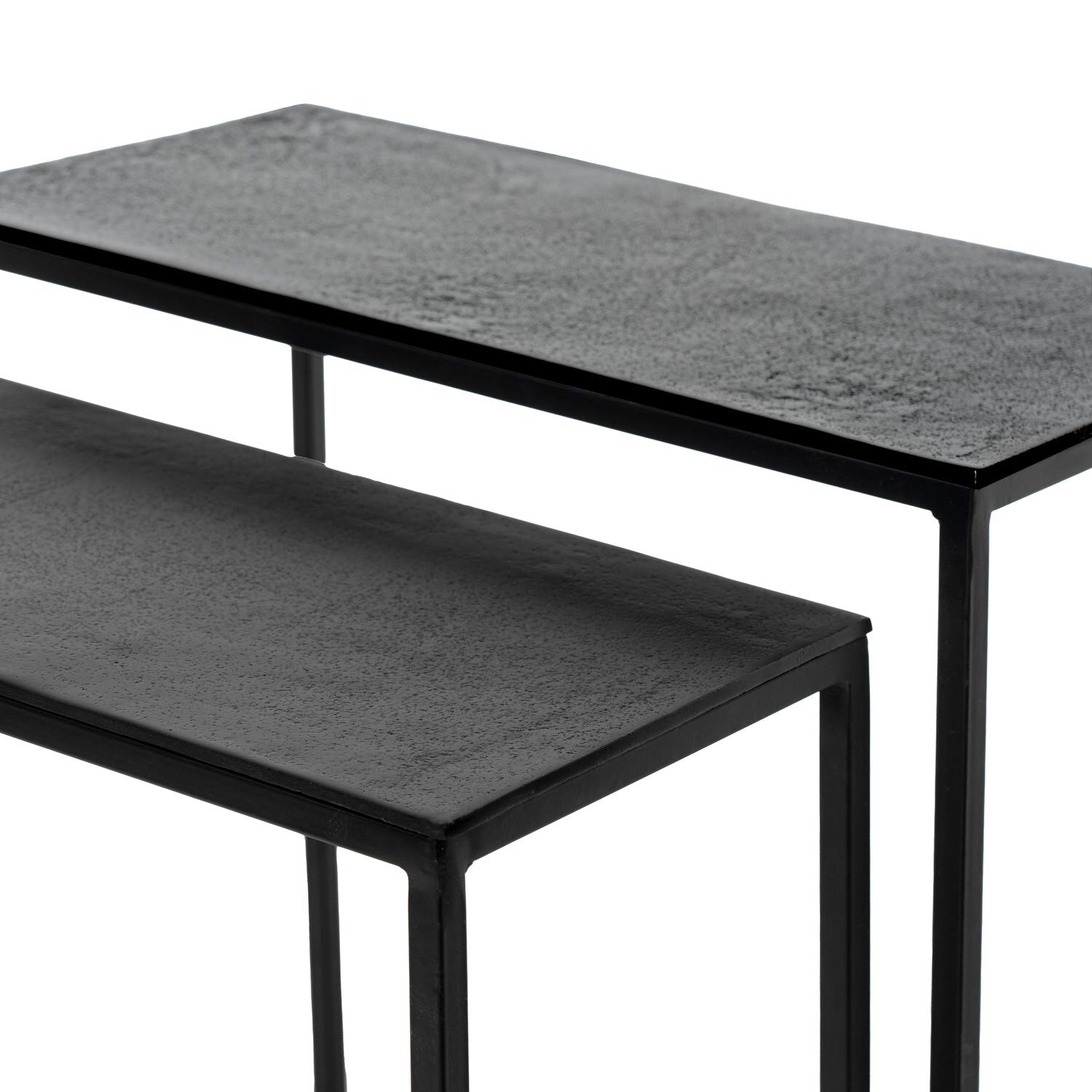 El set de mesas auxiliares VISHAL es ideal para espacios contemporáneos o industriales, donde el diseño versátil y el arte decorativo se fusionan en un conjunto único. Compuesto por dos mesas con tapa de aluminio y patas de hierro, su estructura está pensada para encajar a la perfección una sobre la otra, permitiendo optimizar el espacio sin renunciar al estilo. Las superficies metálicas presentan un acabado texturizado que añade profundidad y un toque distintivo al conjunto. Estas tapas pueden mostrar ligeras imperfecciones derivadas del proceso artesanal. Las patas de hierro, robustas y minimalistas, aportan estabilidad mientras mantienen un perfil estilizado que realza el contraste entre los materiales. No se venden por separado.