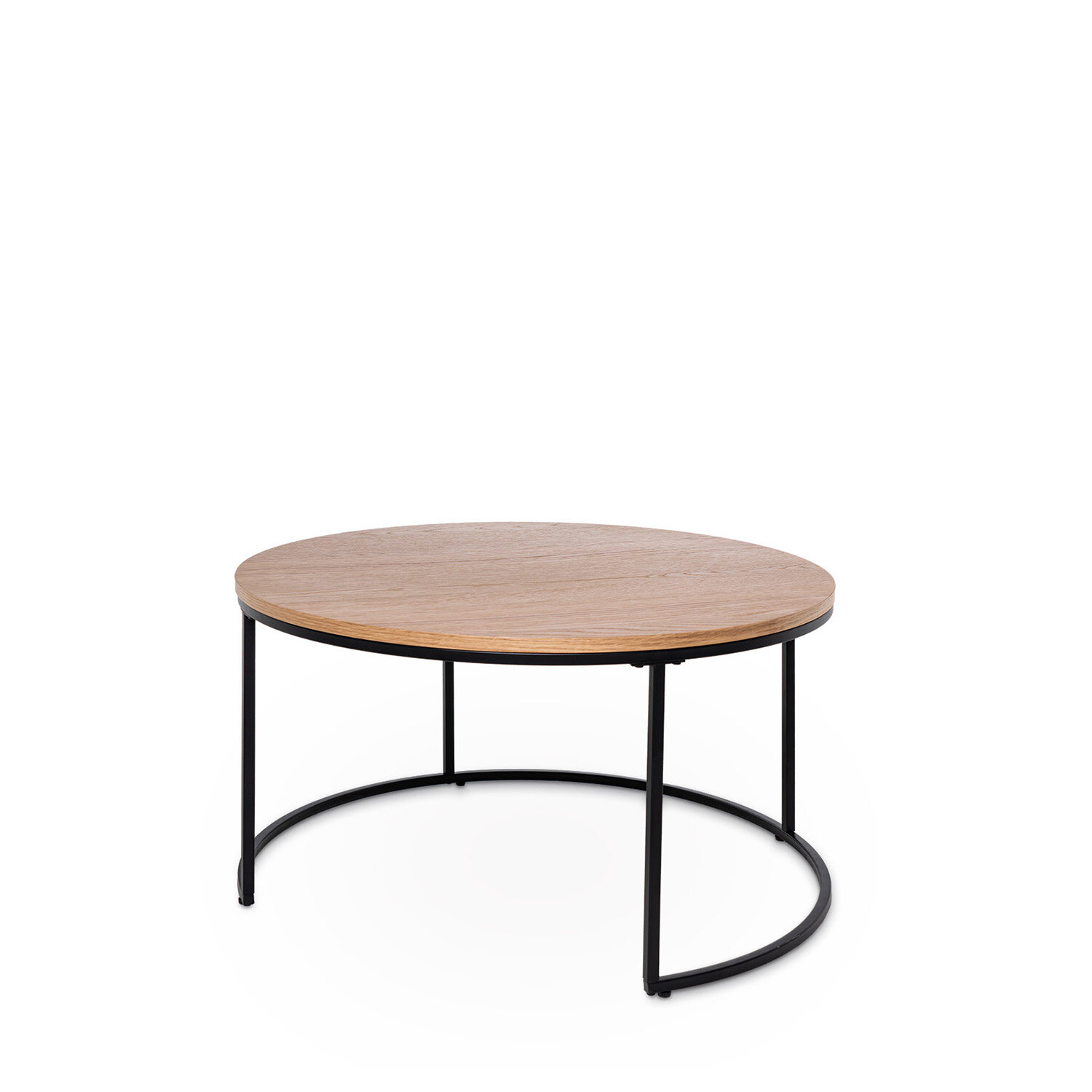 Detalles: Características: MESA 1: Ancho: ø80 cm Fondo: ø80 cm Alto: 45 cm Advertencia tolerancia: +/- 2 cm MESA 1: Ancho: ø50 cm Fondo: ø50 cm Alto: 38 cm Advertencia tolerancia: +/- 2 cm | CARACTERÍSTICAS: Detalles Tapa: CHAPA ROBLE Detalles Pata: METAL Requiere montaje: SÍ Código del producto: 00MC508714 Las imágenes y/o colores de los productos pueden variar ligeramente por motivos de calibrado de pantalla, luz ambiente de la fotografía, ángulo de la misma, remesa producción madera, textil, etc. | PAQUETES: Nº paquetes: 1 Artículos por paquetes: 1 Dimensión paquete: 87 x 87 x 12 cm Peso embalaje: 16 kg Manipulación: 2 personas | MANTENIMIENTO: Recomendaciones: No colocar cerca de fuentes de calor o luz solar. Es recomendable quitar el polvo de los tapizados. Los elementos afilados o metálicos pueden rayar la superficie o producir desgarros. Uso y mantenimiento: Limpiar con paño ligeramente humedecido en agua y jabón neutro con movimientos en círculo. Frotar suavemente. Secar con paño seco. No utilizar productos abrasivos o químicos (lejías, acetonas, disolventes, etc.). Se puede utilizar ligeramente agua y jabón neutro para superficie