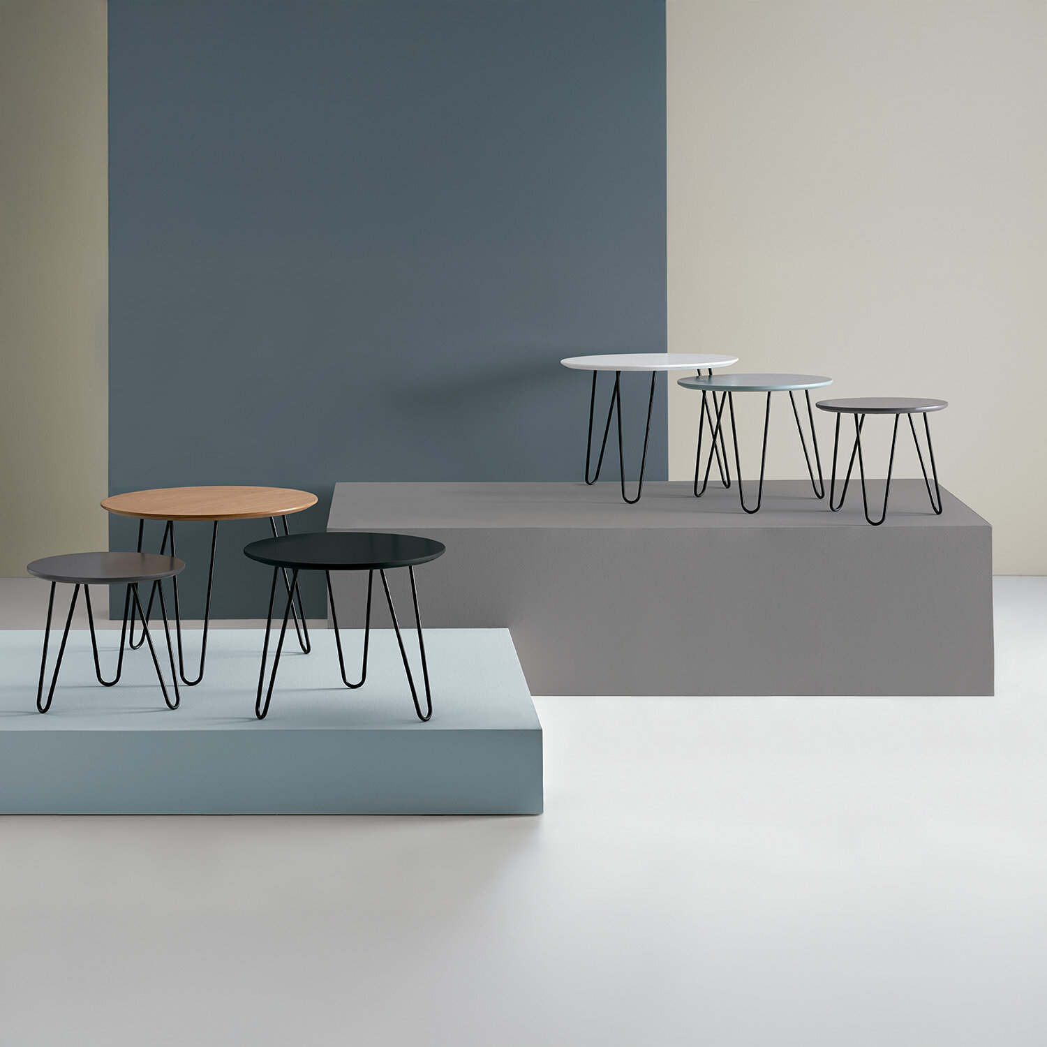 Set mesas centro FABIO blanco+azul+gris oscuro
