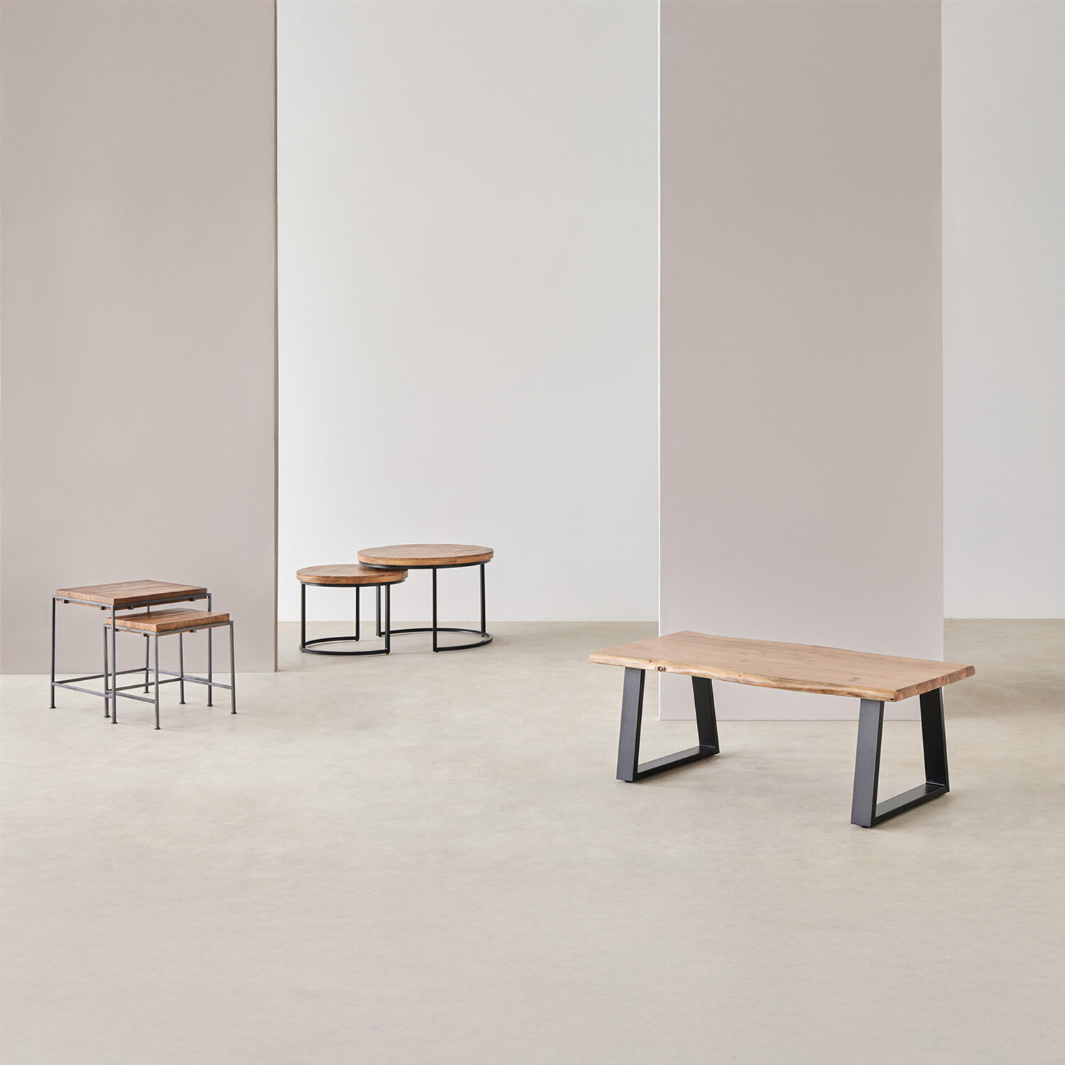 Set de mesa de centro FARLAN reinterpreta el encanto rústico con un enfoque contemporáneo, combinando materiales naturales y líneas depuradas que elevan cualquier estancia. Su sobre de madera maciza de mango, con un acabado cálido y vetas visibles, aporta una textura orgánica y una sensación de autenticidad difícil de igualar. Gracias a su elaboración artesanal, cada pieza es única: los dibujos y tonos de la madera pueden variar ligeramente, realzando su carácter natural y exclusivo. Su diseño circular, descansa sobre una robusta estructura de metal negro, añadiendo un sutil contraste industrial sin perder elegancia. No se venden por separado.