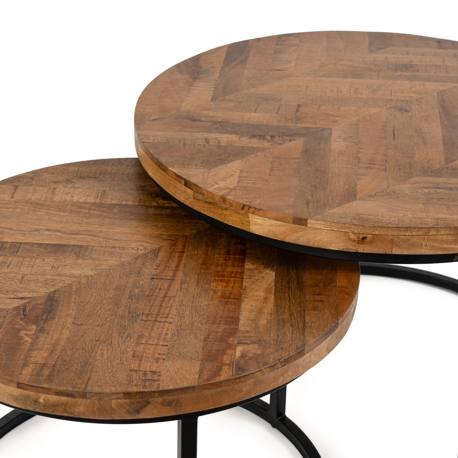 Detalles: MESA 1 | Ancho/fondo/alto: ø75 x 51 cm | Grosor de la tapa: 4 cm | Advertencia tolerancia: +/- 2 cm | MESA 2 | Ancho/fondo/alto: ø60 x 42,2 cm | Grosor de la tapa: 4 cm | Advertencia tolerancia: +/- 2 cm | Nº paquetes: 1 | Artículos por paquetes: 1 SET MESA CENTRO | Dimensión paquetes: 80 x 80 x 55 cm | Peso embalaje: 19 kg | Tapón en patas: SÍ | Manipulación: 1 persona | Detalles Tapa: MADERA DE MANGO | Detalles Pata: METAL | Requiere montaje: NO | Código del producto: 00MC506107 | Las imágenes y/o colores de los productos pueden variar ligeramente por motivos de calibrado de pantalla, luz ambiente de la fotografía, ángulo de la misma, remesa producción madera, textil, etc. | Recomendaciones: | Uso y mantenimiento:
