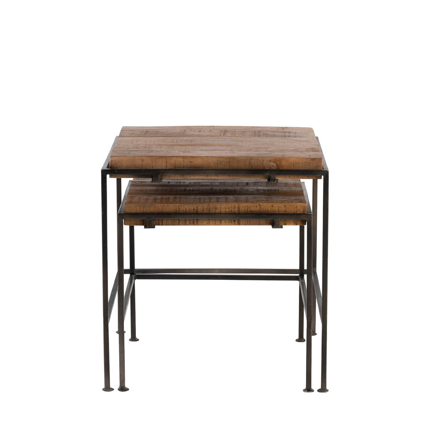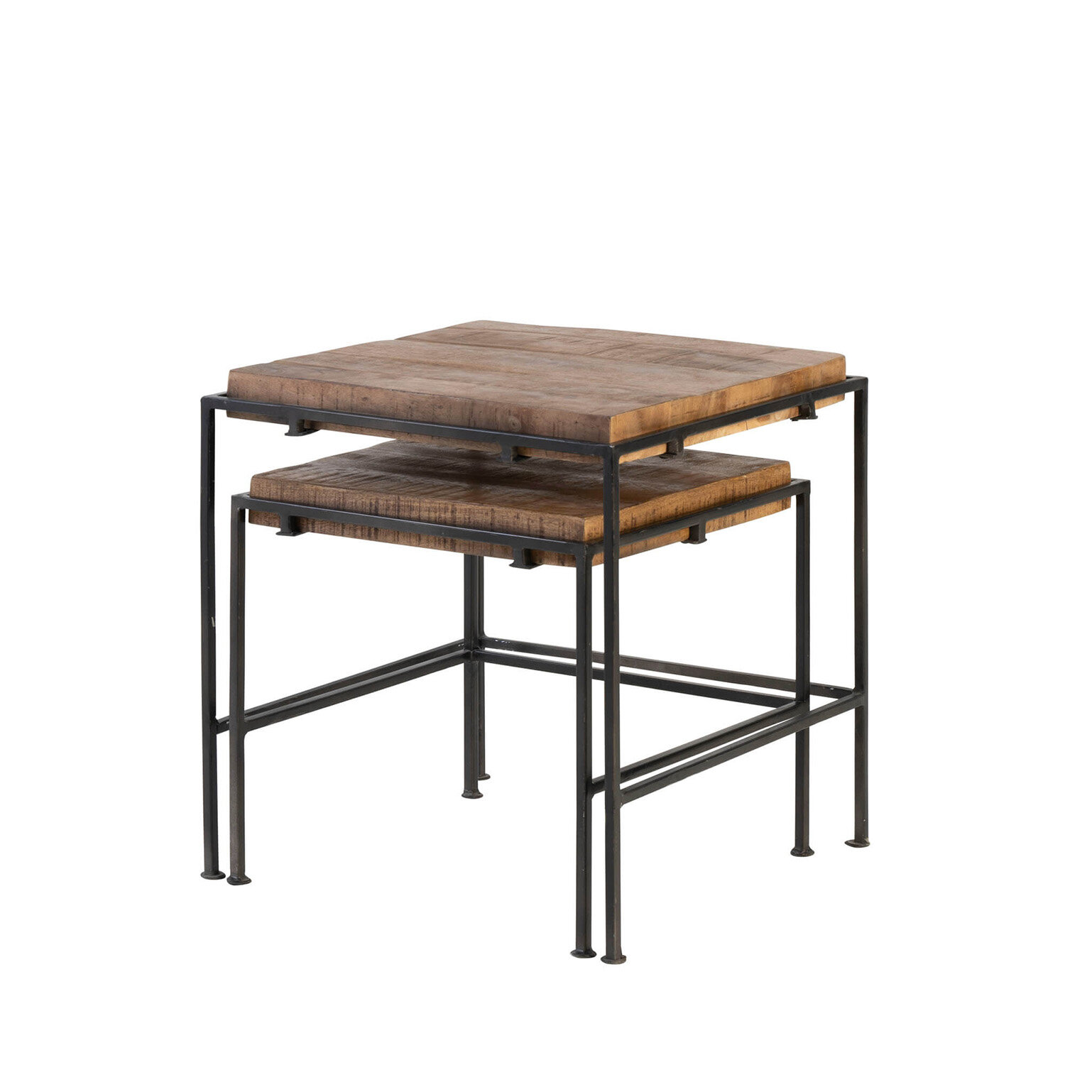 Detalles: Características: MESA 1 Ancho: 50 cm Fondo: 50 cm Alto: 53 cm Grosor tapa: 5 cm Advertencia tolerancia: +/- 2 cm MESA 2 Ancho: 43 cm Fondo: 43 cm Alto: 42,5 cm Grosor tapa: 5 cm Advertencia tolerancia: +/- 2 cm | CARACTERÍSTICAS: Detalles Tapa: MADERA RECICLADA Detalles Pata: HIERRO Requiere montaje: NO Código del producto: 00MC505107 Las imágenes y/o colores de los productos pueden variar ligeramente por motivos de calibrado de pantalla, luz ambiente de la fotografía, ángulo de la misma, remesa producción madera, textil, etc. | PAQUETES: Nº paquetes: 1 Artículos por paquetes: 1 SET MESAS CENTRO Dimensión paquete: 72 x 72 x 21 cm Peso embalaje: 12 kg Manipulación: 1 persona | MANTENIMIENTO: Recomendaciones: No colocar cerca de fuentes de calor o luz solar. Es recomendable quitar el polvo de los tapizados. Los elementos afilados o metálicos pueden rayar la superficie o producir desgarros. Uso y mantenimiento: Limpiar con paño ligeramente humedecido en agua y jabón neutro con movimientos en círculo. Frotar suavemente. Secar con paño seco. No utilizar productos abrasivos o químicos (lejías, acetonas, disolventes, etc.). Se puede utilizar ligeramente agua y jabón neutro para superficie