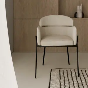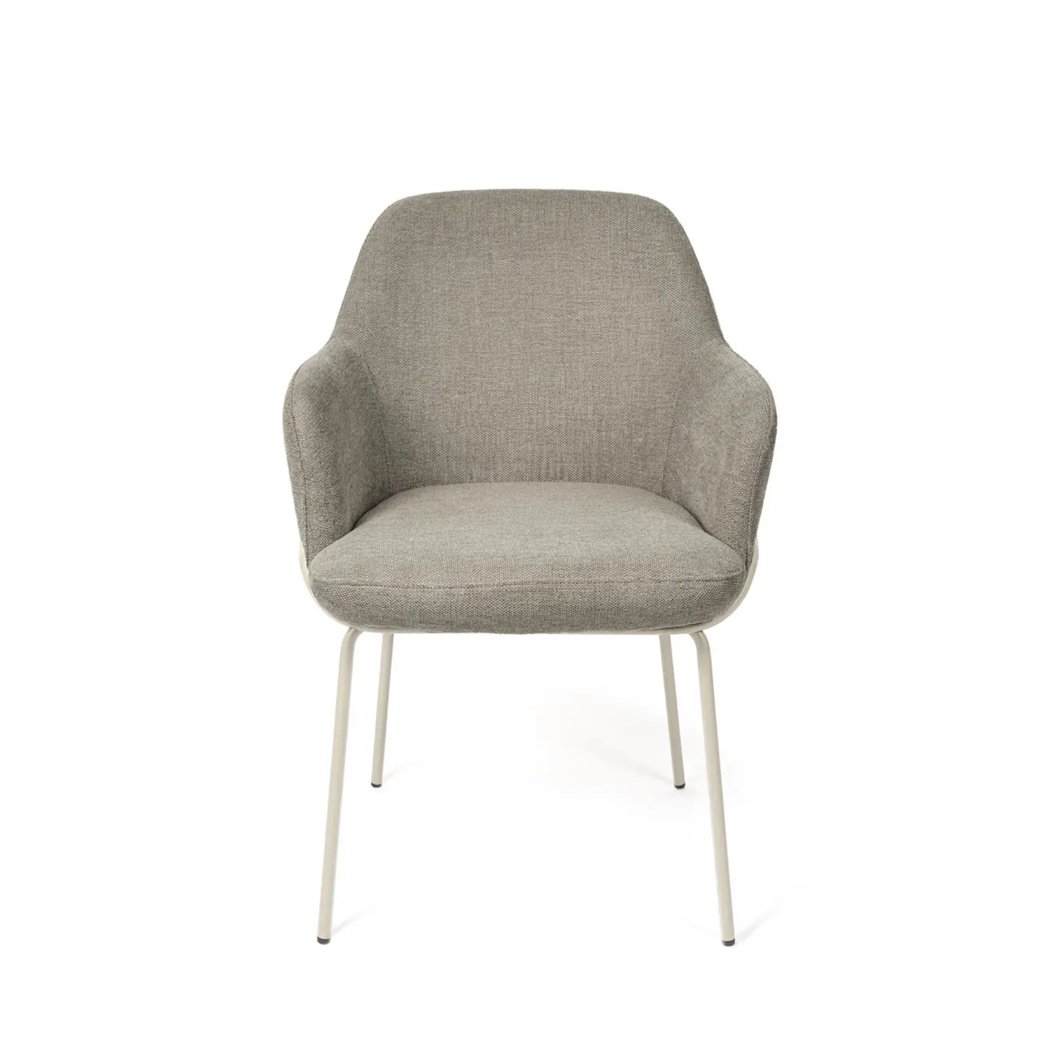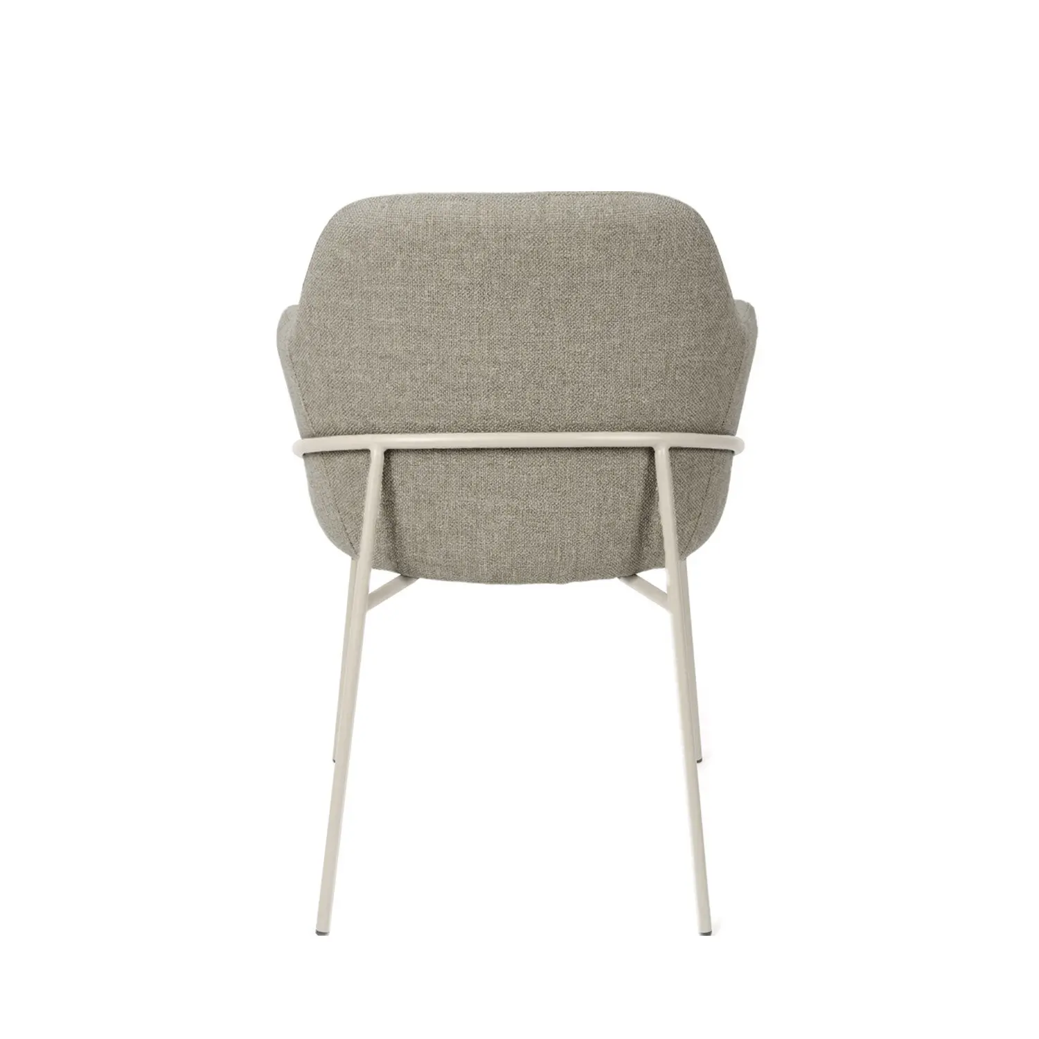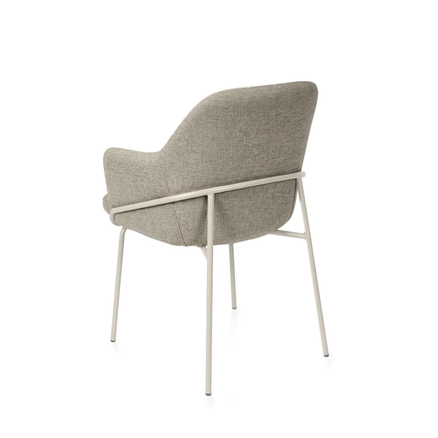 La silla ABIGAIL se distingue por su diseño ergonómico y cómodo, ofreciendo un amplio respaldo y reposabrazos que aseguran un confort superior. Su estética moderna y contemporánea se ve realzada por la combinación del tapizado en color taupe y las barras metálicas de las patas. Además, el refuerzo en el respaldo trasero no solo proporciona una mayor resistencia, sino que también añade un toque de elegancia. Esta silla no solo es funcional, sino que también aporta un estilo refinado a cualquier espacio, convirtiéndose en una pieza clave de decoración. Modelo disponible con pata negra.