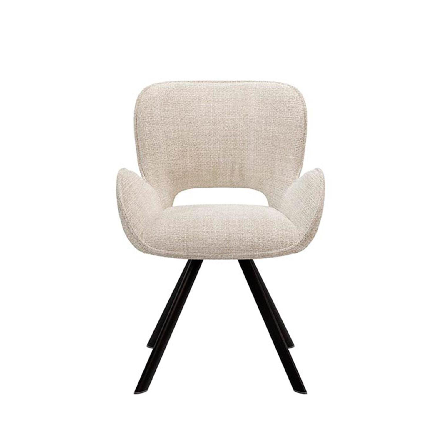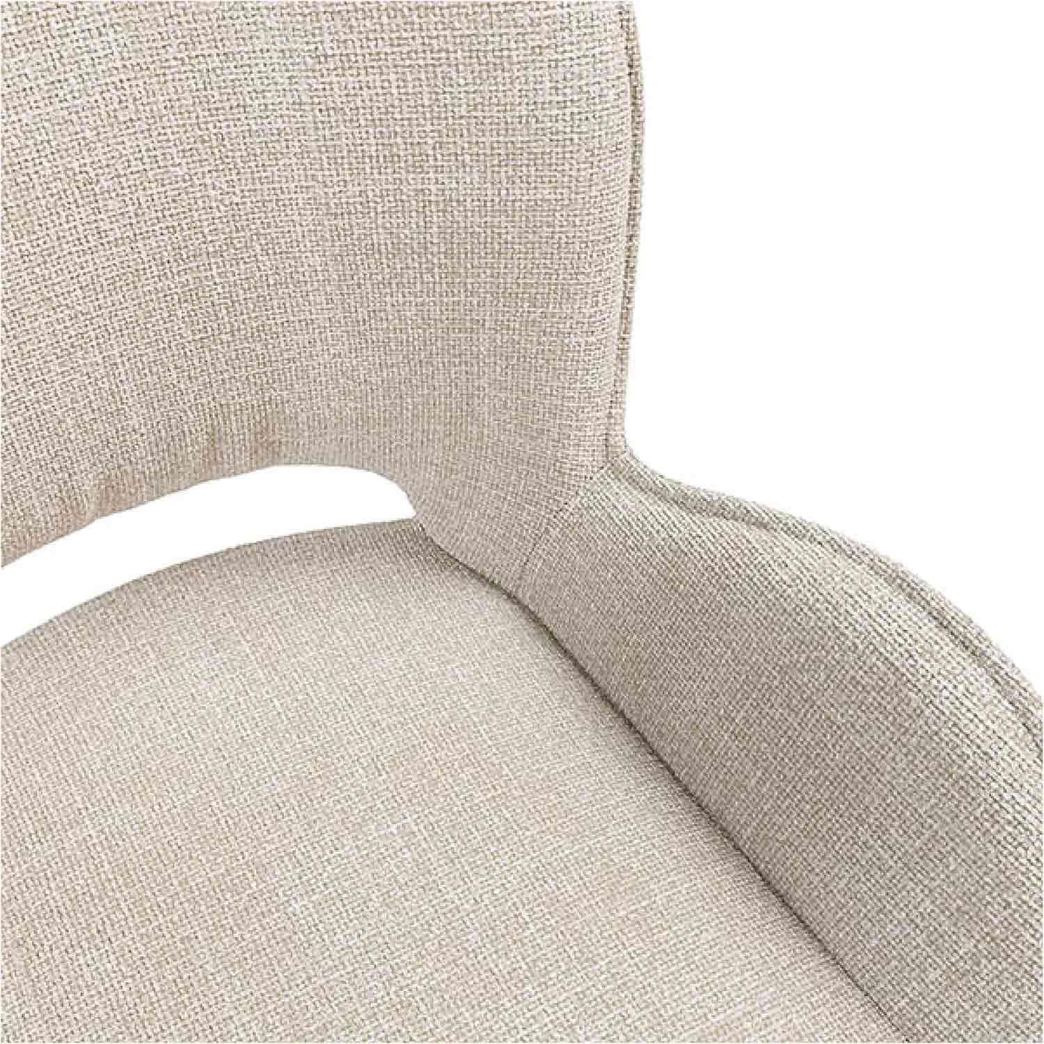 El respaldo y los reposabrazos curvados de la silla ASTRID le otorgan un diseño sofisticado y elegante. Su tapicería en tejido beige aporta un tono neutro y versátil, ideal para integrarse en diversos estilos de decoración interior. Además, esta silla está completamente acolchada, ofreciendo un alto nivel de confort para un uso prolongado.