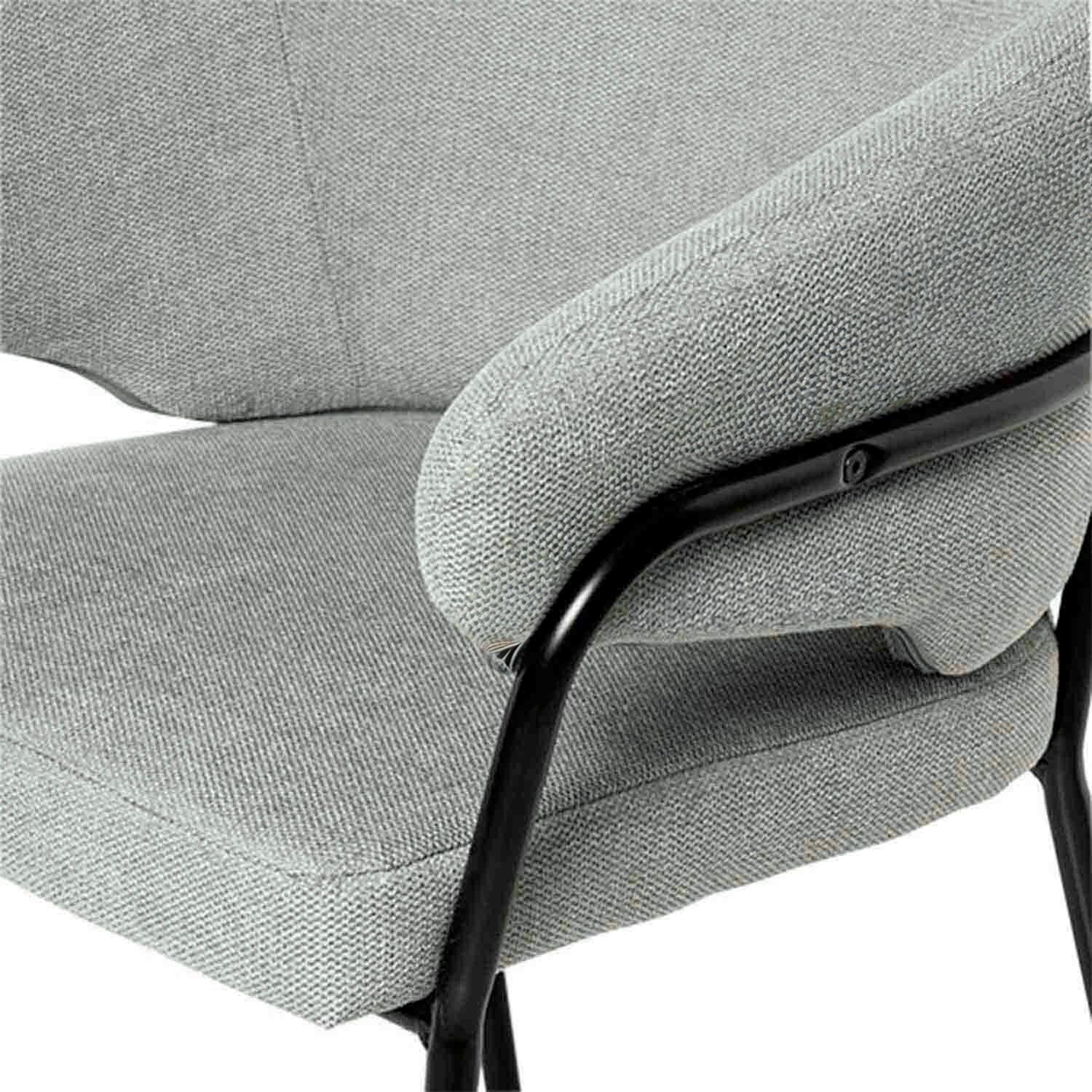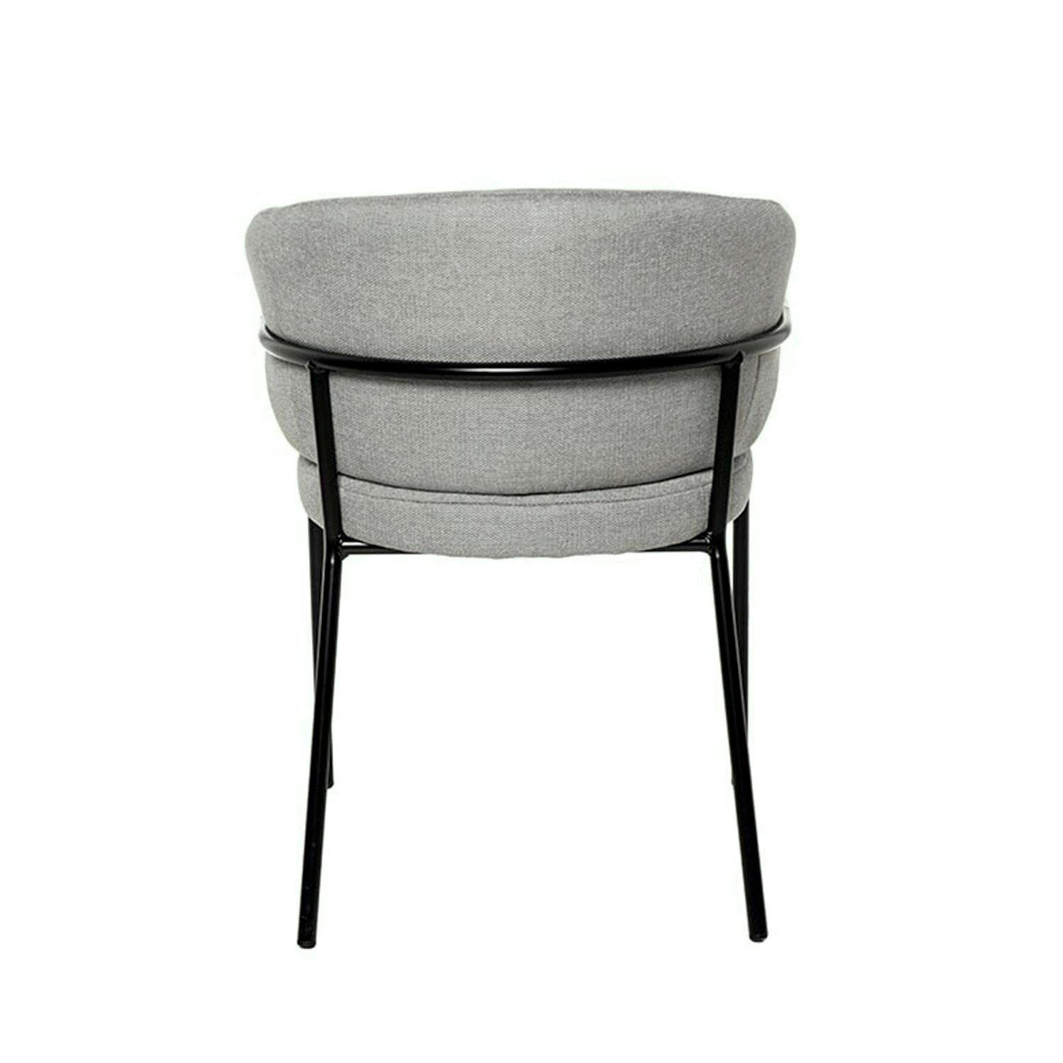 La silla BETINA destaca por su diseño minimalista y su confort superior. Cuenta con un respaldo y reposabrazos acolchados que garantizan una experiencia de asiento cómoda y ergonómica. El tapizado en color gris claro crea un contraste elegante con las patas de metal negro, aportando un toque moderno y sofisticado. Un detalle distintivo es el adorno metálico en negro en la parte trasera del respaldo, que no solo añade un elemento estético, sino que también proporciona mayor sujeción y estabilidad. La silla BETINA se adapta perfectamente a diferentes estilos de decoración y a diversos entornos interiores, siendo una opción versátil y funcional para cualquier espacio.