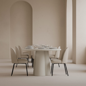 El diseño original y llamativo de la silla BIMBA la convierte en la elección perfecta para comedores de estilo moderno. La textura cuadrada de su tejido, confeccionado en 100% poliéster, no solo añade un toque de sofisticación, sino que también crea un contraste elegante con las suaves formas de la silla. Las patas metálicas en color negro complementan el diseño, aportando un toque contemporáneo y garantizando estabilidad y durabilidad.
