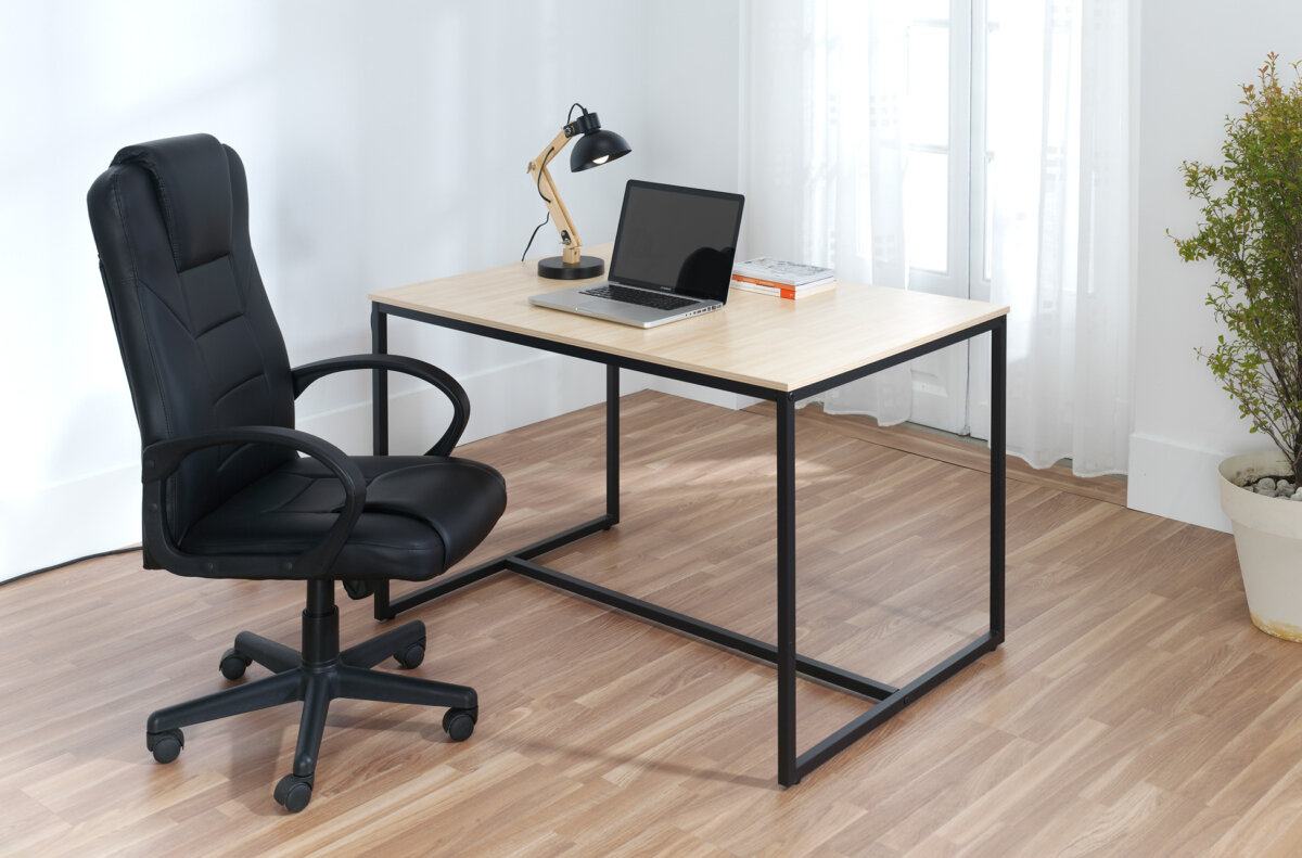 SILLA DE DESPACHO MODELO HENRY SÍMIL PIEL NEGRO.