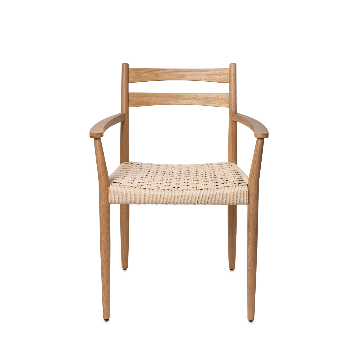 La silla EDNA es una pieza que combina la esencia del diseño escandinavo con un sutil aire artesanal, logrando un equilibrio entre sofisticación y naturalidad. Su estructura en madera de roble, con un elegante acabado natural, aporta carácter y modernidad, convirtiéndola en un elemento distintivo para cualquier ambiente. El asiento, elaborado con cuerda trenzada en tono beige, ofrece no solo un atractivo contraste visual, sino también una sensación de comodidad y frescura. Su trenzado artesanal refuerza su estética rústica y refinada, perfecta para quienes buscan un mobiliario con personalidad y calidez. Su respaldo de líneas depuradas y curvatura ergonómica, junto con unos apoyabrazos sutilmente integrados, hacen de esta silla una opción ideal para comedores, salones o espacios de lectura.