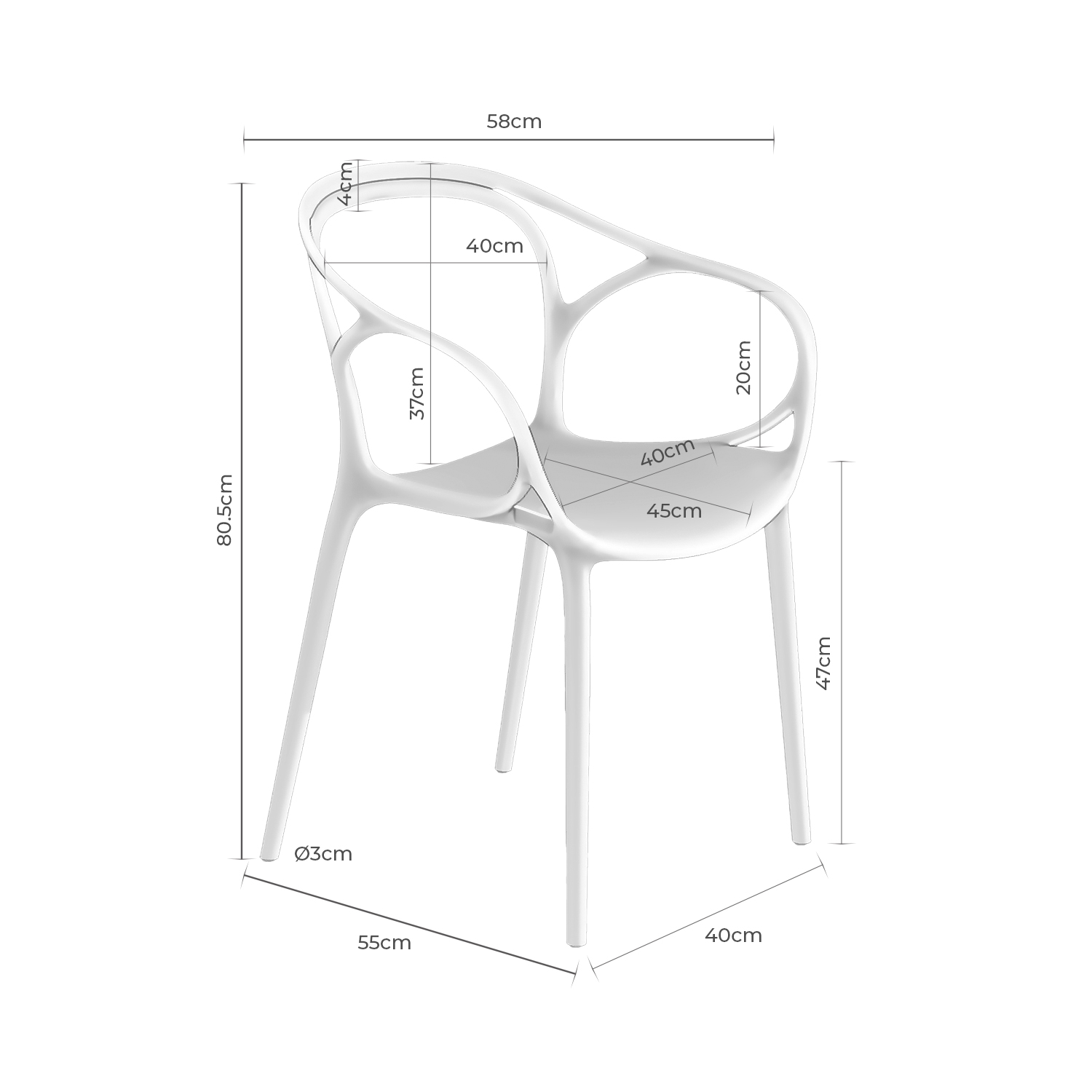 Silla de polipropileno, apilable y con diseño minimalista y elegante. La silla EILIN combina a la perfección las líneas curvas y fluidas, con una estructura de una sola pieza que le otorga un aspecto sólido y sofisticado.