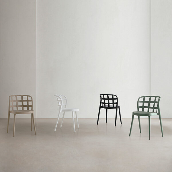 La silla GINA se caracteriza por su diseño elegante y contemporáneo. El asiento, de grosor generoso, ofrece mayor comodidad y estabilidad, mientras que el respaldo, ligeramente curvado, está diseñado para adaptarse ergonómicamente a la forma de la espalda, brindando una experiencia de asiento más cómoda y relajada. Este último, además, destaca por su distintivo patrón de rejilla de tiras anchas entrecruzadas, aportando un toque moderno y sofisticado. Fabricada completamente en polipropileno de alta calidad, esta silla no solo es duradera, sino que también es apilable, lo que facilita su almacenamiento y transporte.